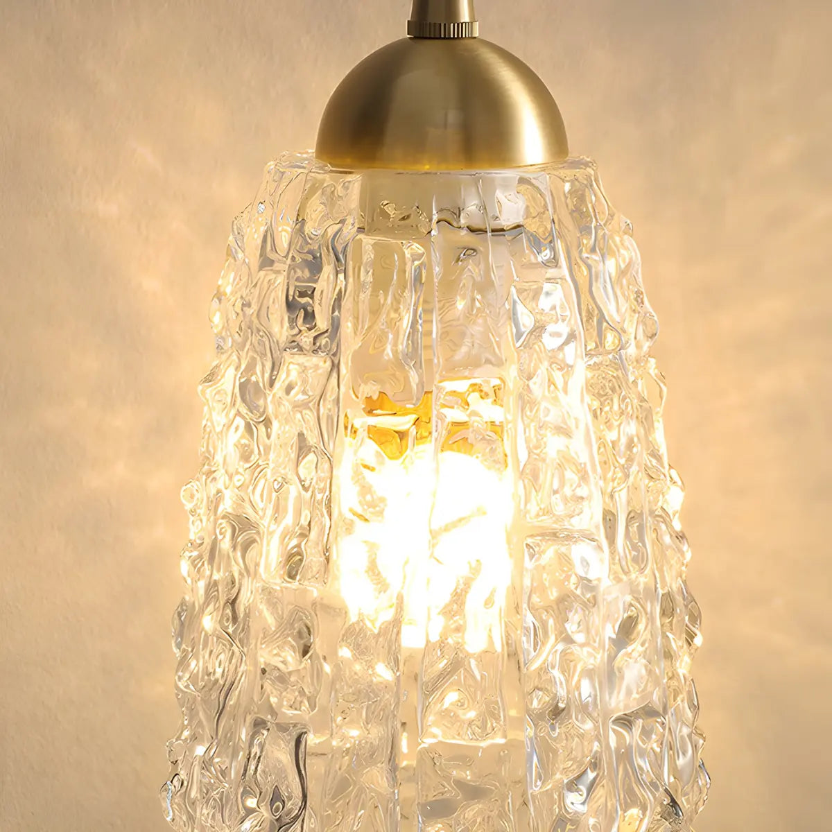 This modern pendant light combines its exquisite glass lampshade and golden metal accessories to create a modern and elegant visual effect. The delicate and transparent glass embellishes a delicate and soft halo, bringing a touch of gorgeousness and sophistication to the interior space.