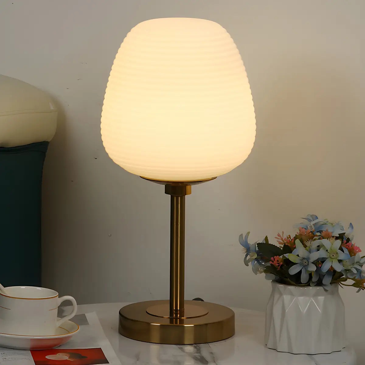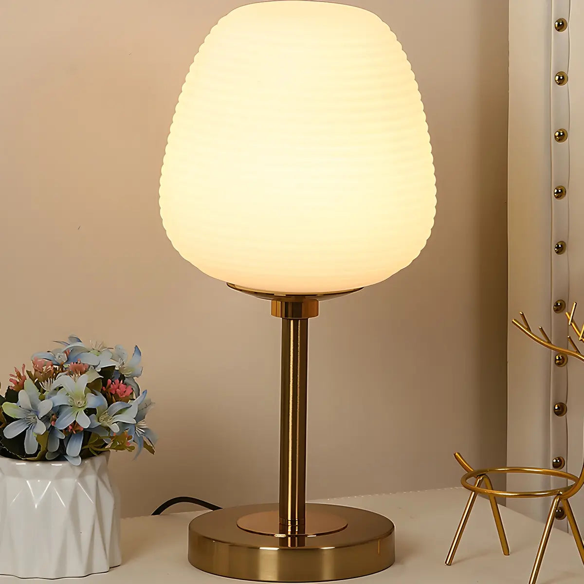 ZOWALA - Elegant Oval Striped Glass Gold Table Light