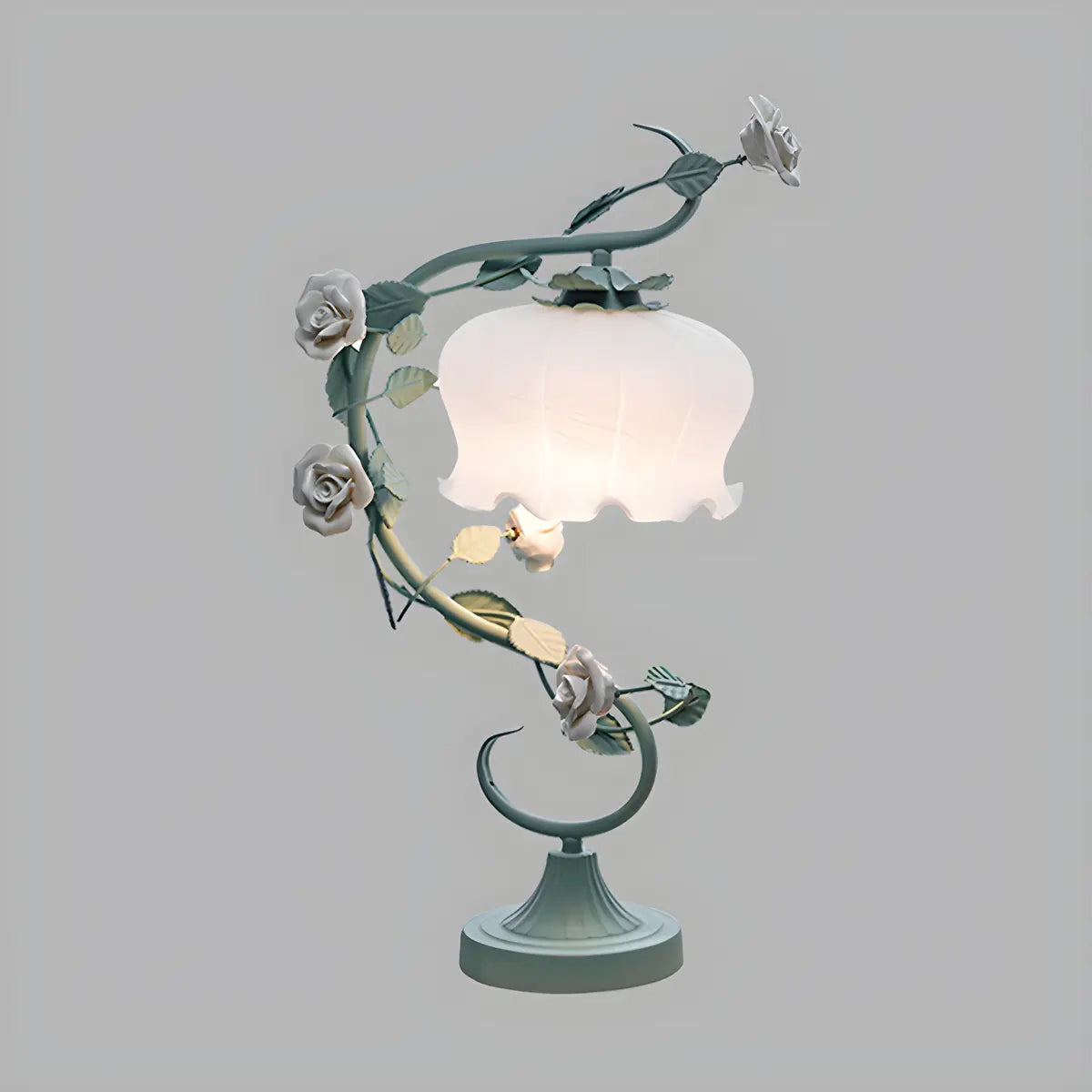 - The wrought iron metal base ensures the stability and durability of the lamp, and the rose decoration adds a romantic touch.