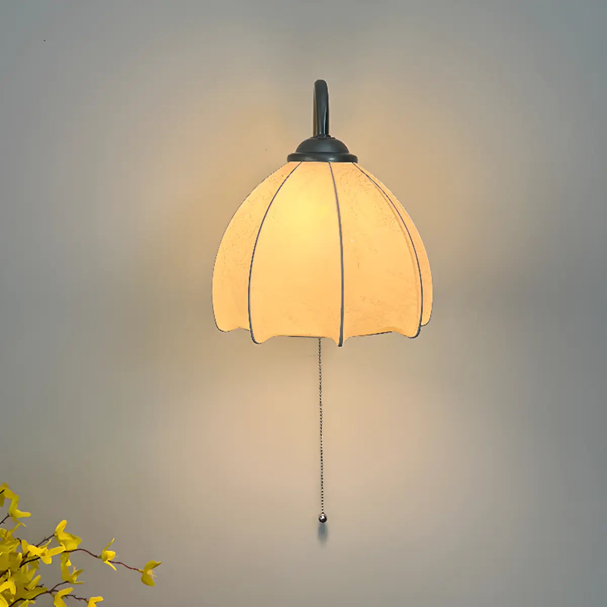 ZOWALA - Elegant Pull Chain Fabric Wood Wall Sconce