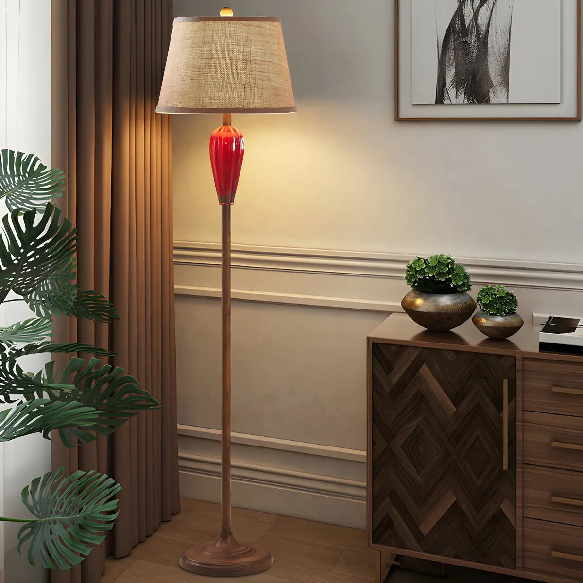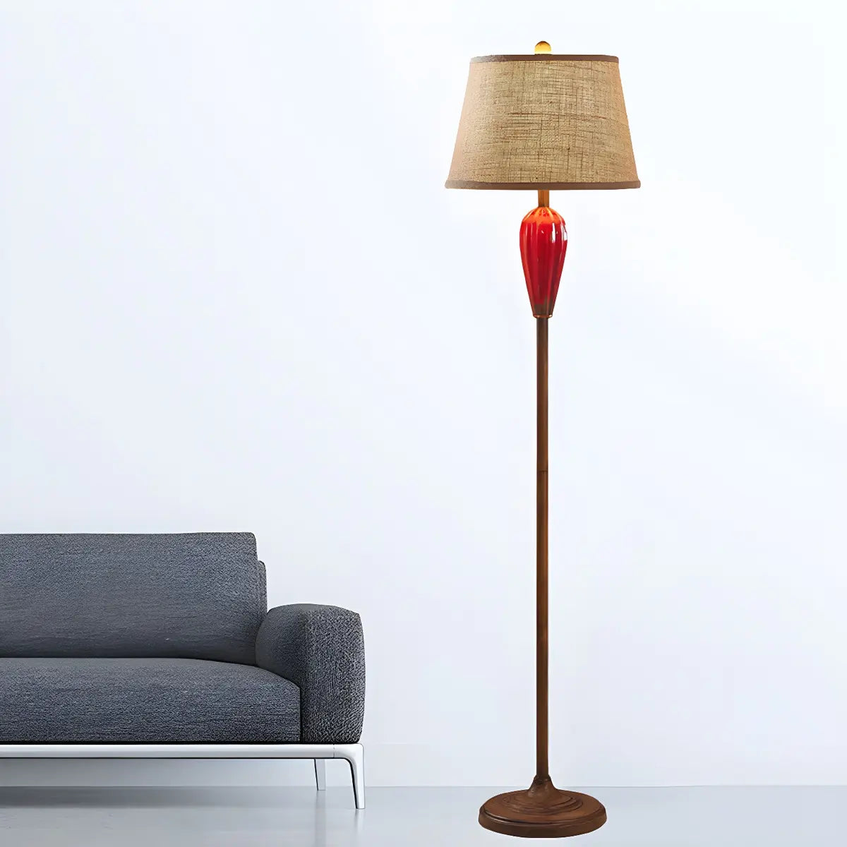 ZOWALA - Elegant Red Ceramic Fabric Drum Floor Lamp