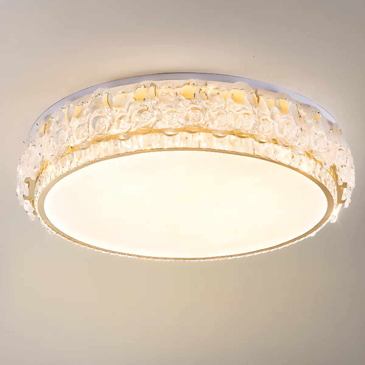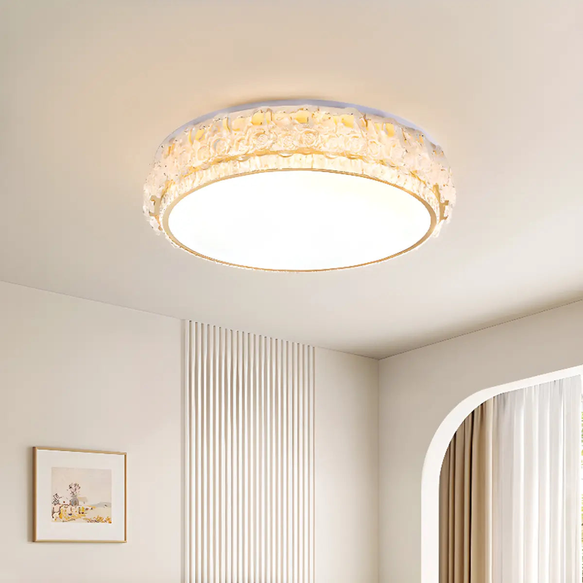 ZOWALA - Elegant Steel Round Drum Crystal Flush Mount Light