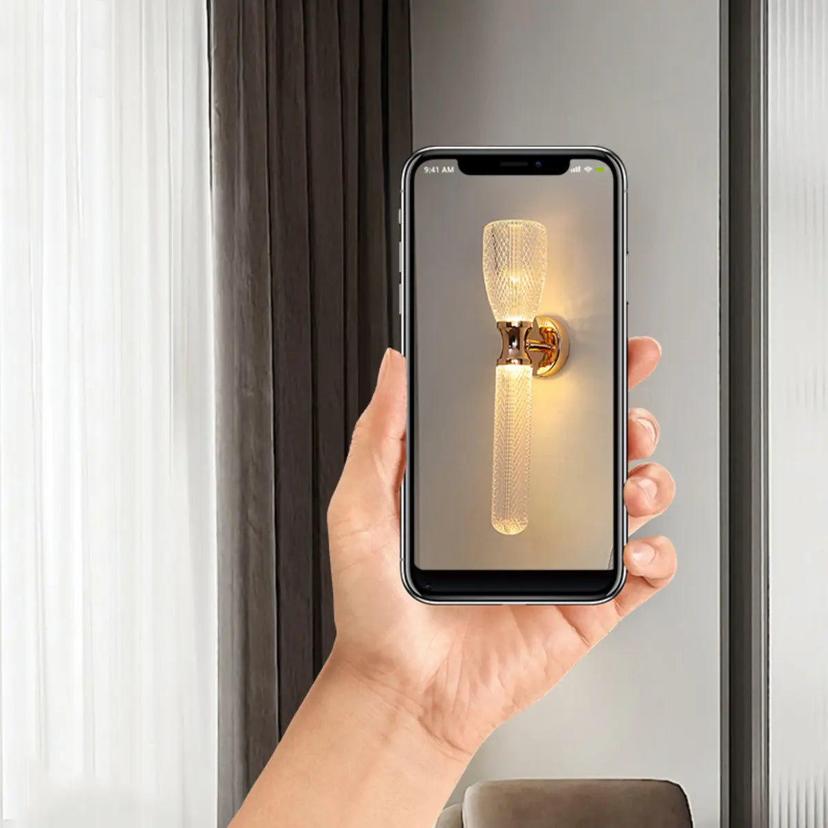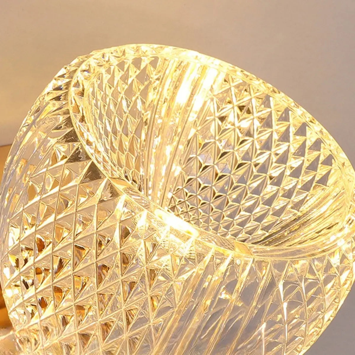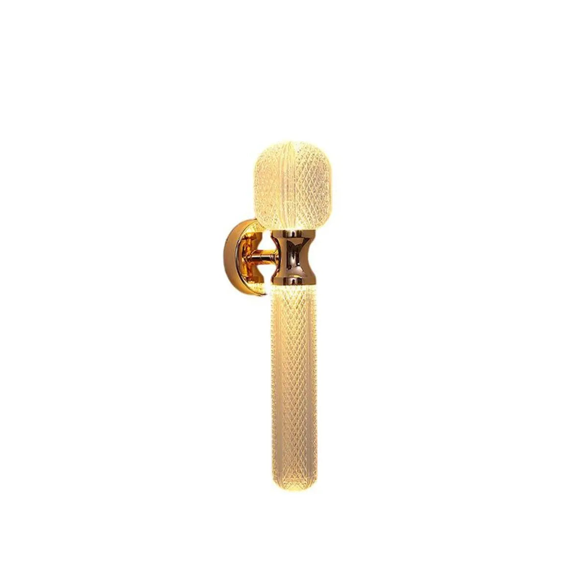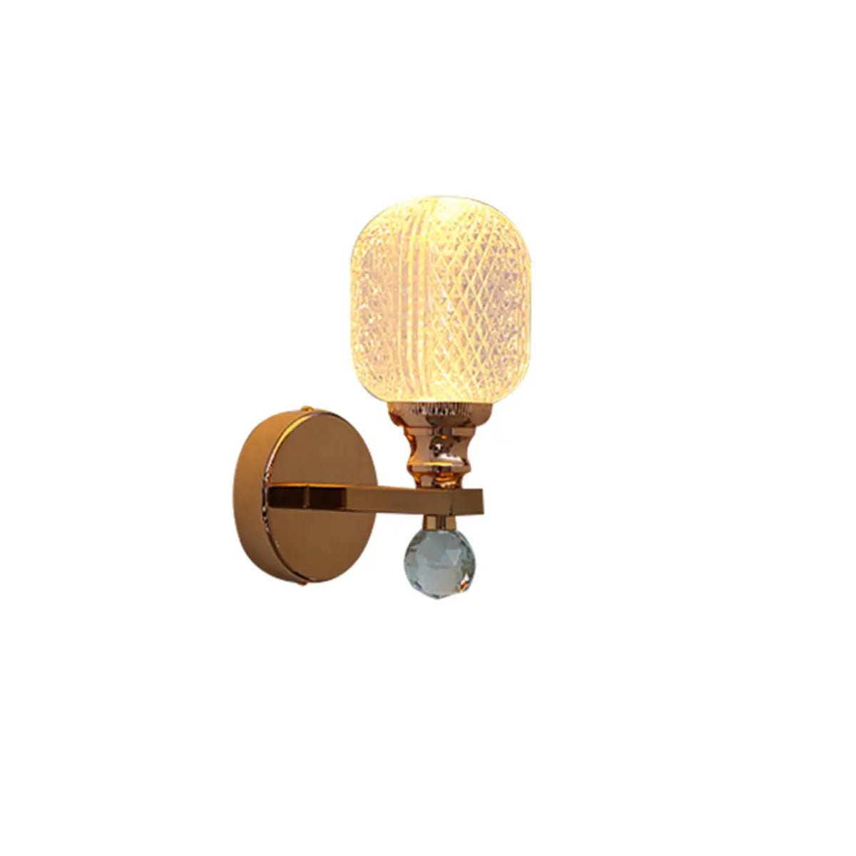 Based on a modern design style, this wall lamp features an elegant embossed acrylic lampshade and gold metal material that shows a unique and stylish sense.