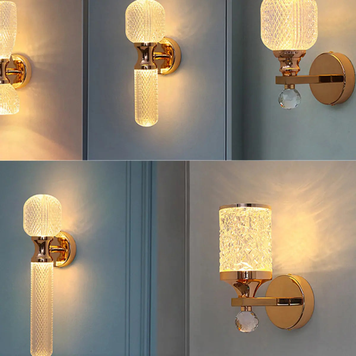 ZOWALA - Elegant Textured Acrylic Cylinder Gold Wall Sconce