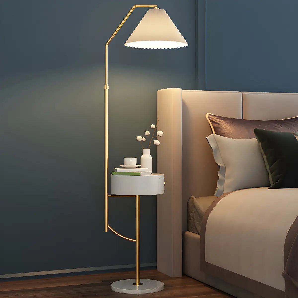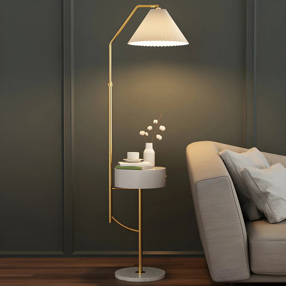 ZOWALA - Elegant White Cone Gold Floor Lamp with Table