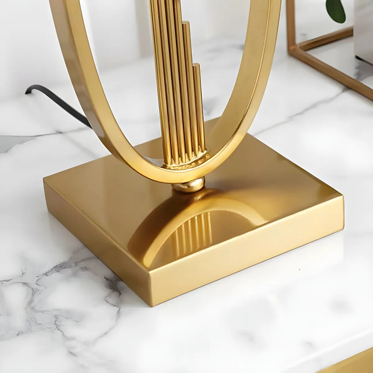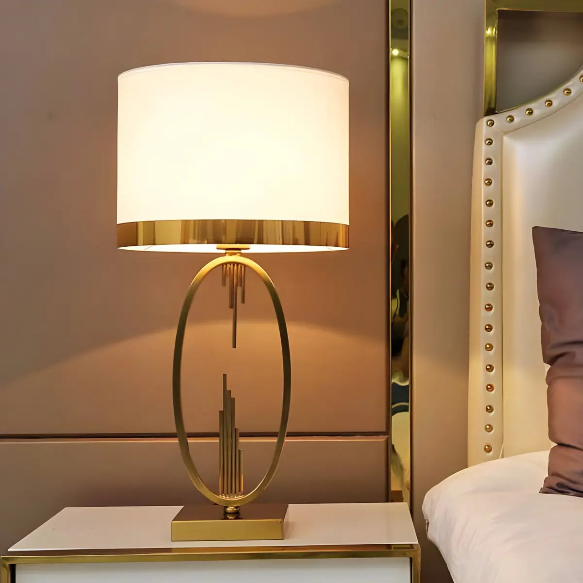 This modern table lamp is known for its exquisite design and excellent lighting effect. The golden metal oval frame and simple white fabric lampshade can easily become the focus of both the living room and the bedroom.