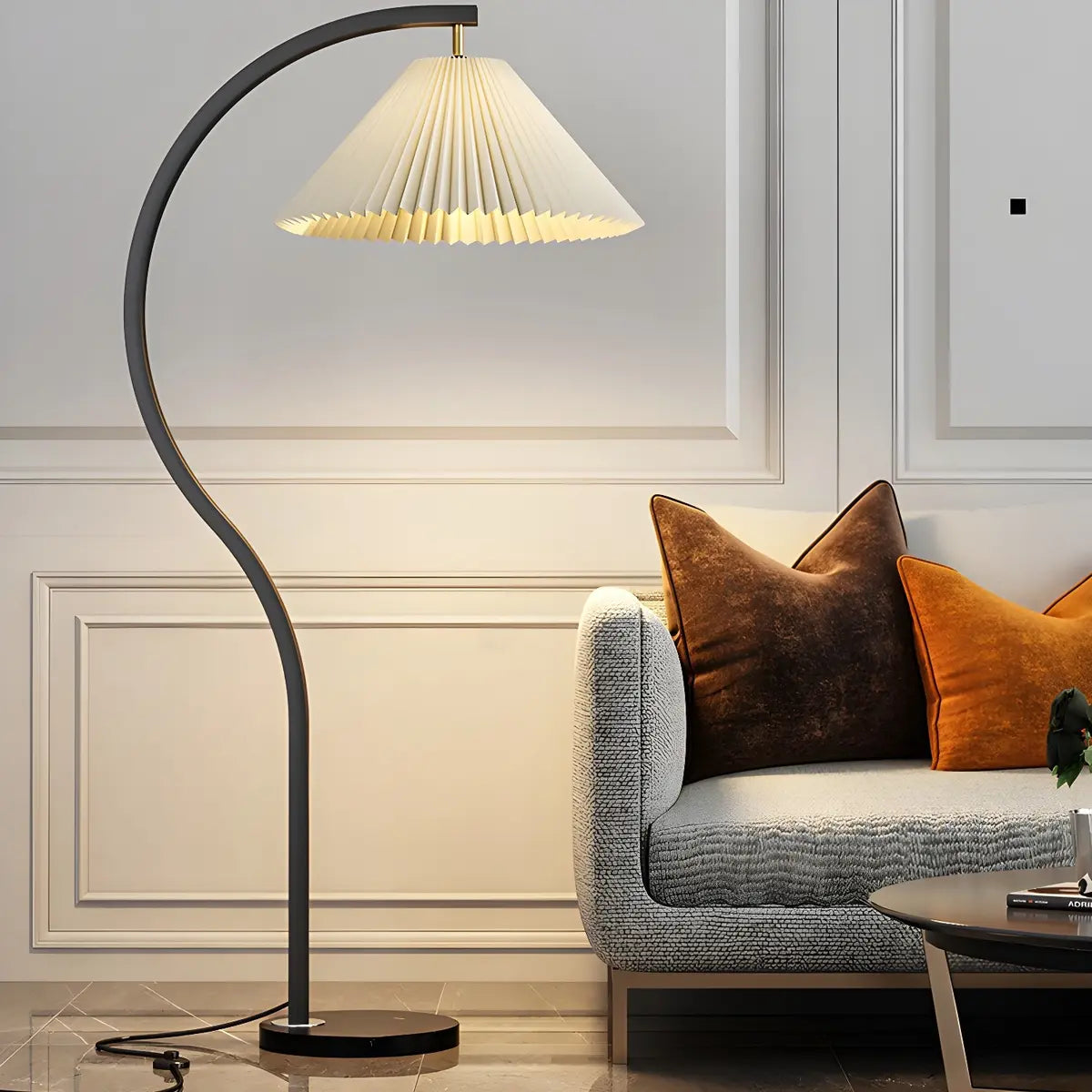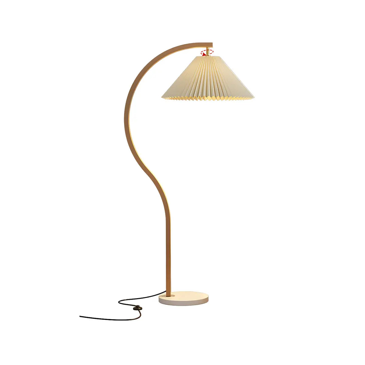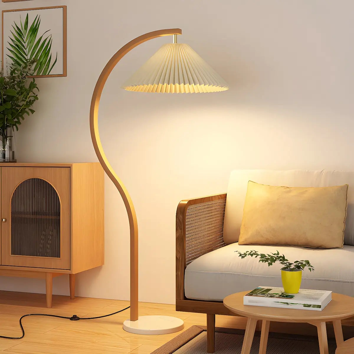 ZOWALA - Elegant Wood-Color Curved Fabric Floor Lamp