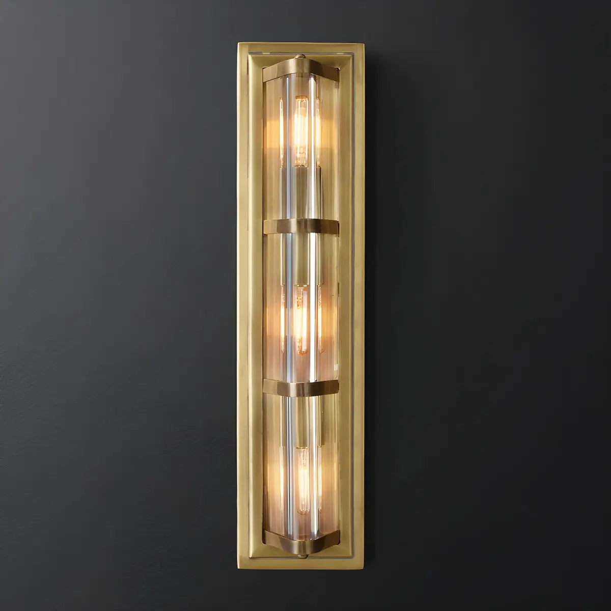 This modern brass vanity light adds a touch of luxury to your decor with its unique design and high-quality materials. Combined with the simple beauty of the transparent plastic tube, it is perfect for living rooms, bedrooms, corridors and other spaces, bringing soft and elegant light to every corner.