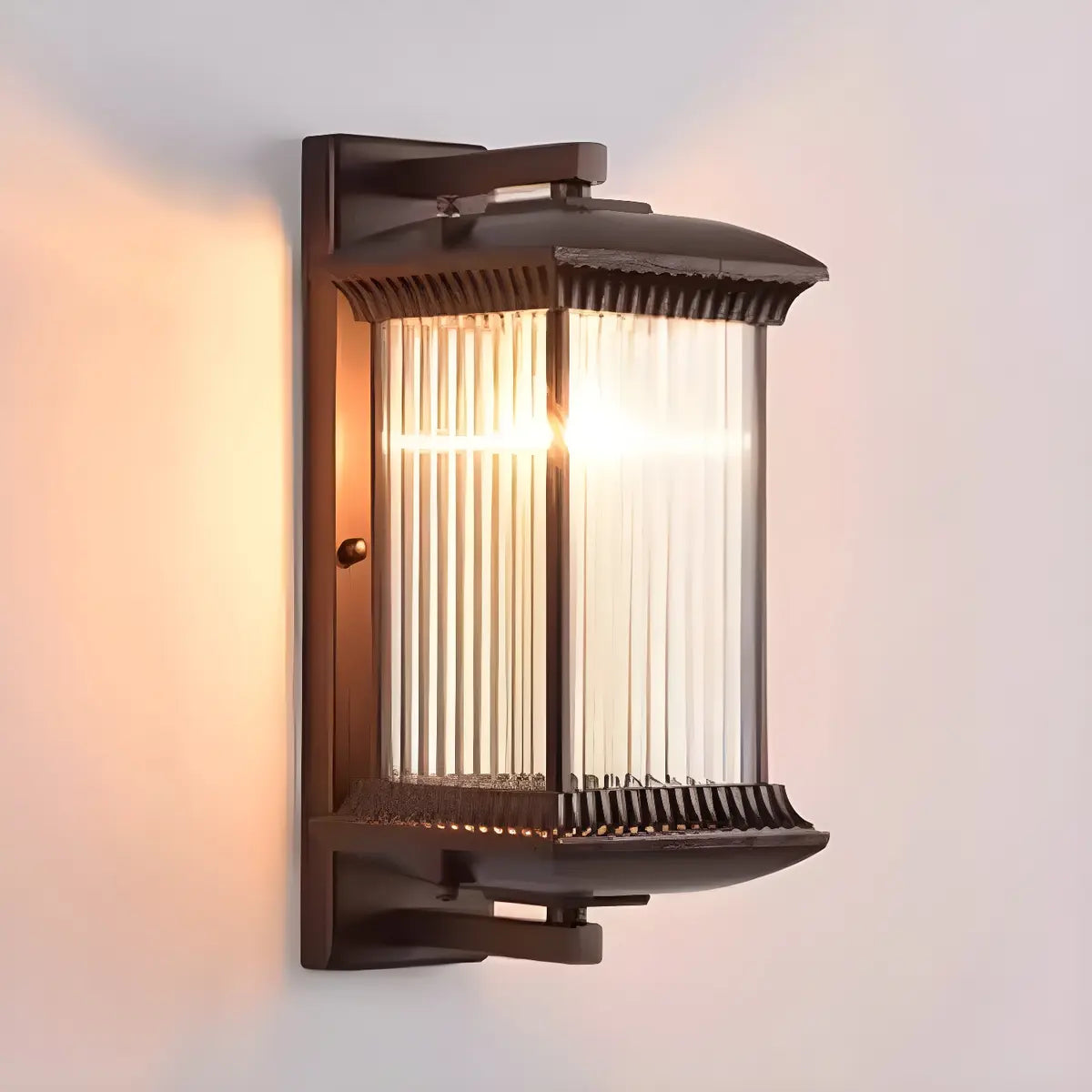 ZOWALA - Exterior Brown Box Striped Glass LED Wall Sconce