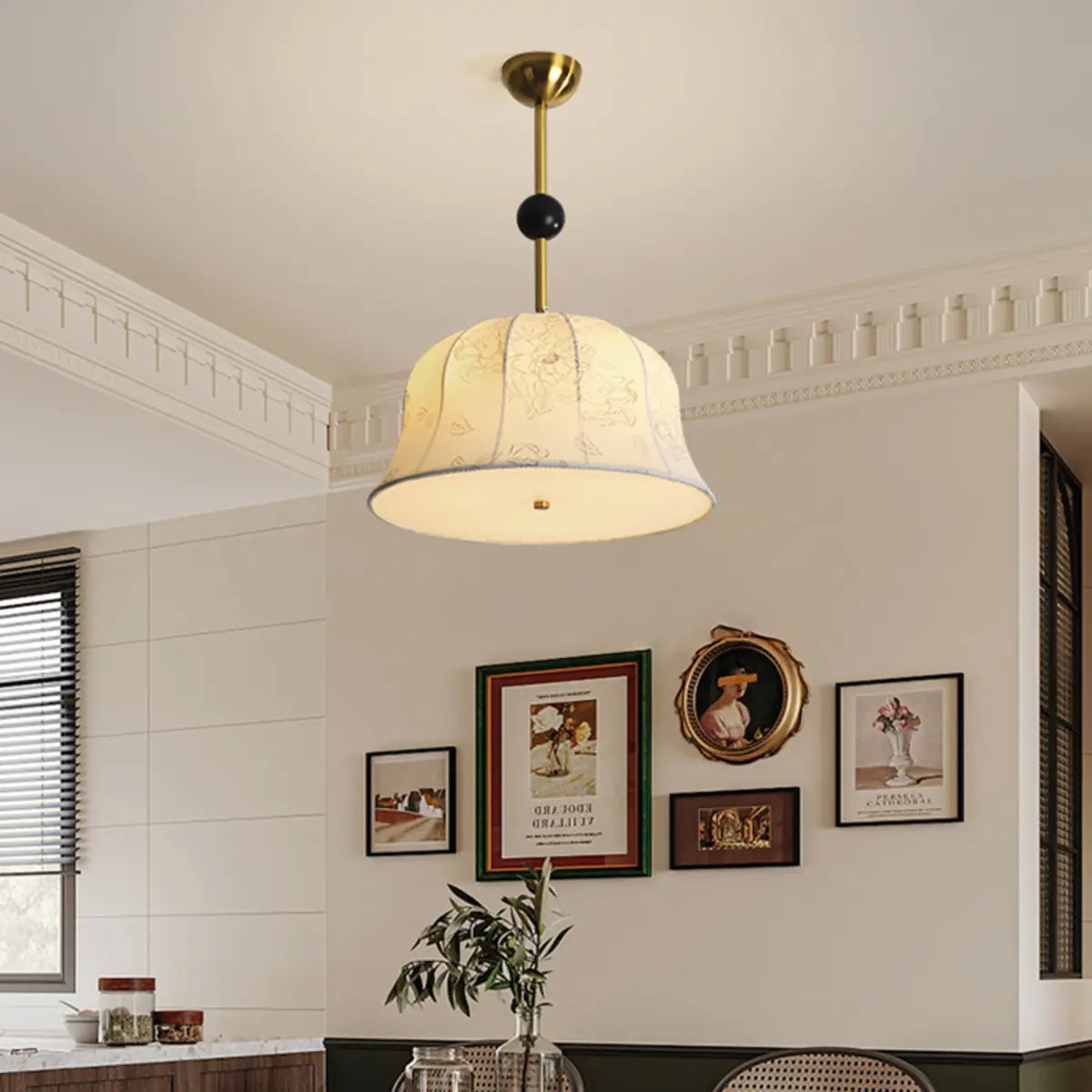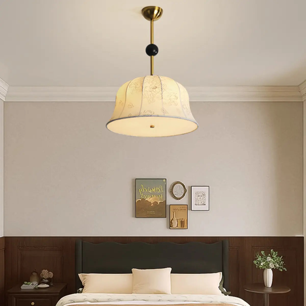 ZOWALA - Retro Gold Fabric White Drum Chandelier