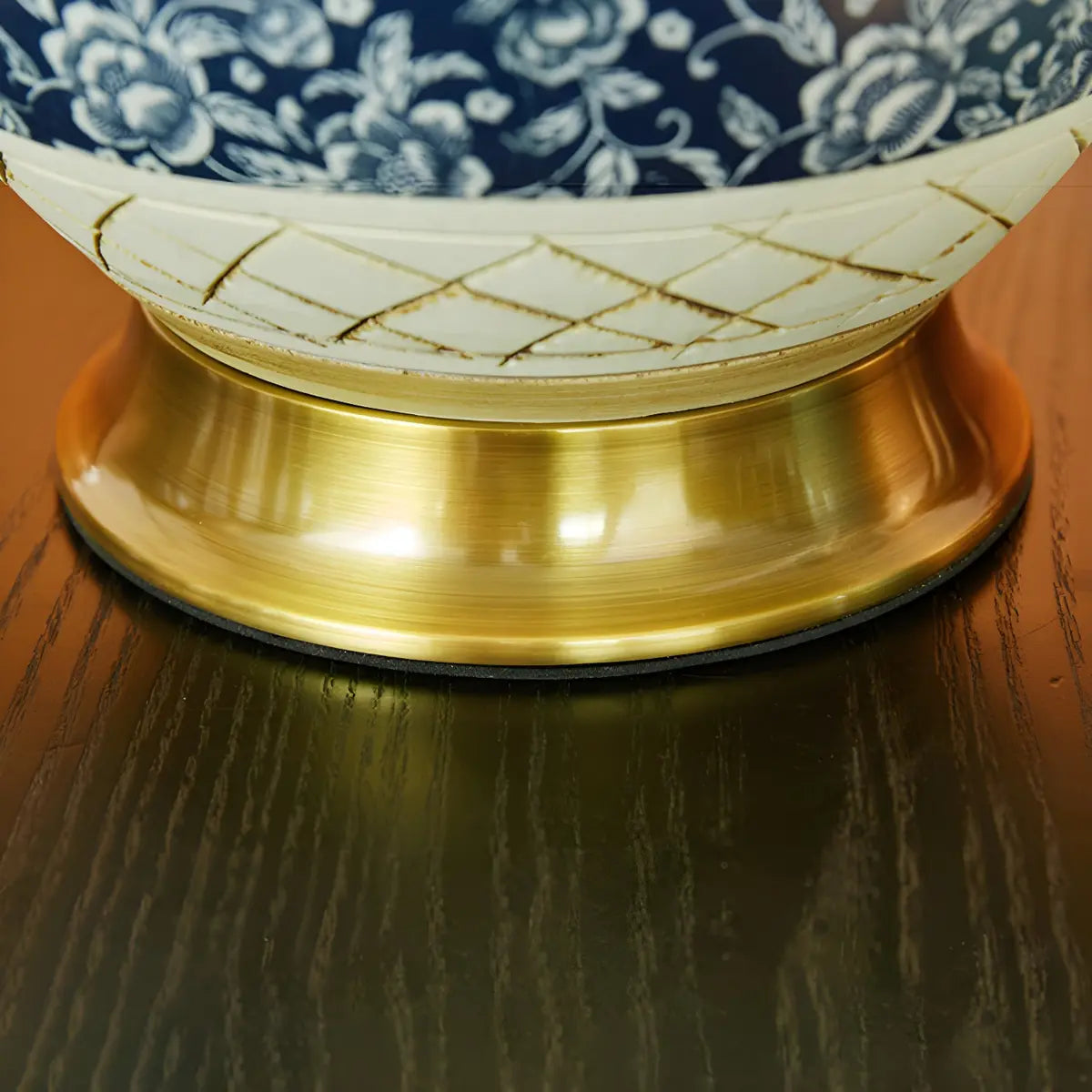 ZOWALA - Fabric Classic Blue White Ceramic Table Light