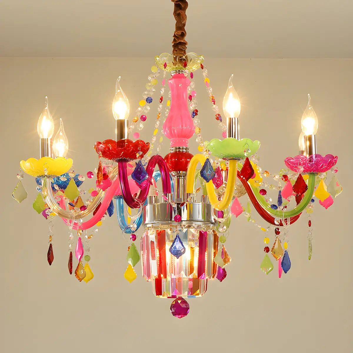 ZOWALA - Kids Colorful Glass Crystal Candelabra Chandelier