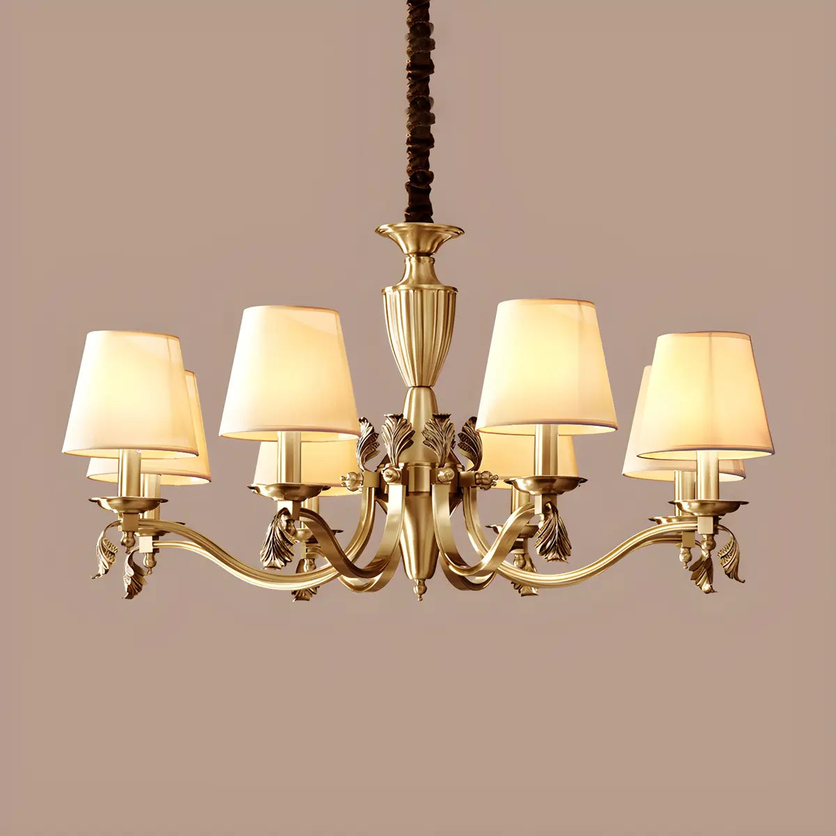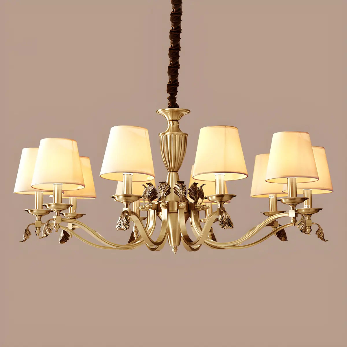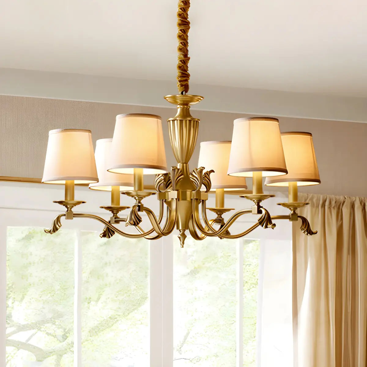 This classic fabric round chandelier combines elegance and practicality, making it a great choice for any interior space. Its exquisite brass design combines perfectly with the soft light to add a touch of warmth and luxury to your room.