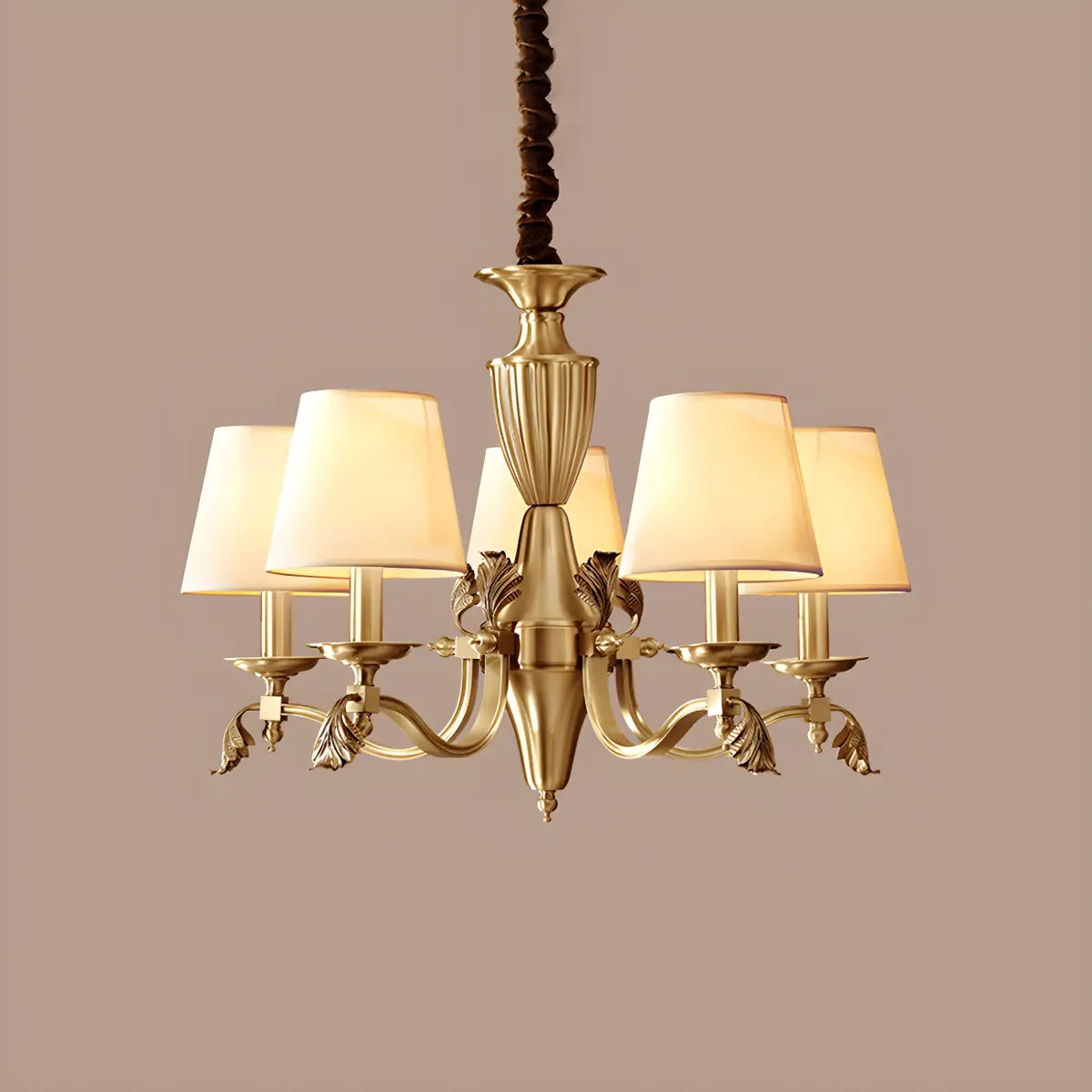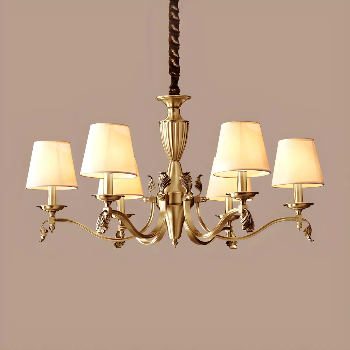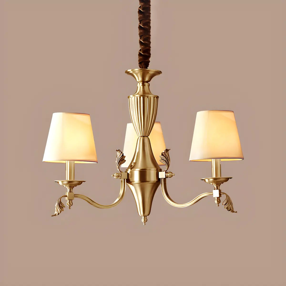 This classic fabric round chandelier combines elegance and practicality, making it a great choice for any interior space. Its exquisite brass design combines perfectly with the soft light to add a touch of warmth and luxury to your room.