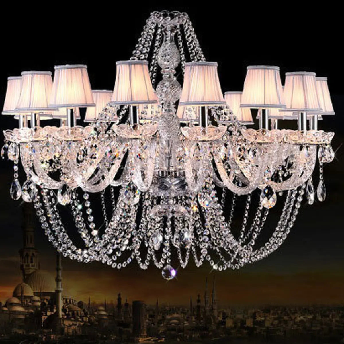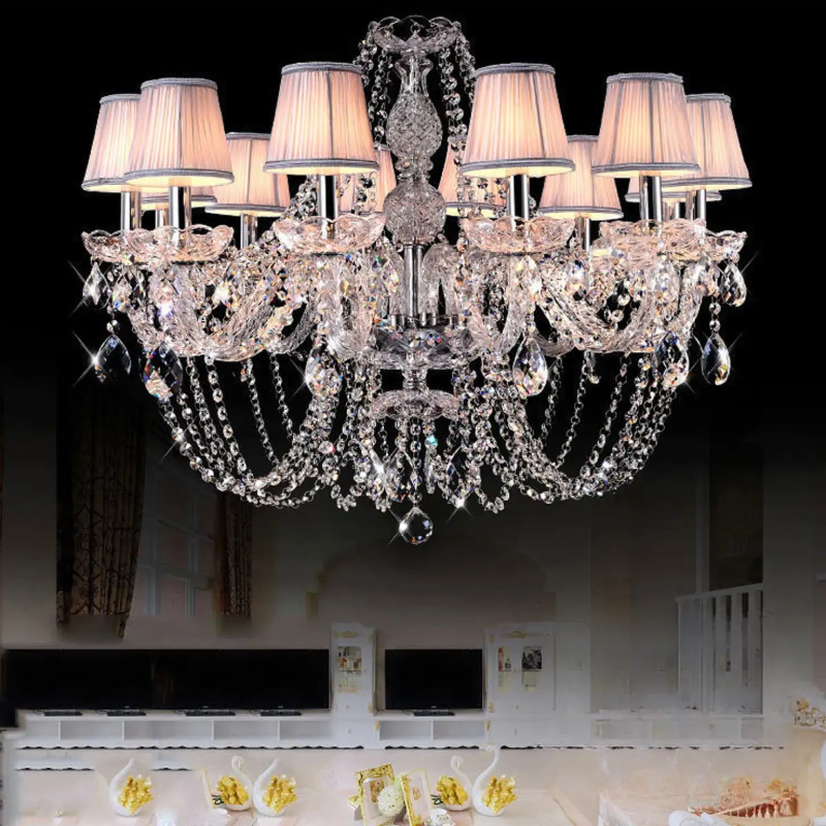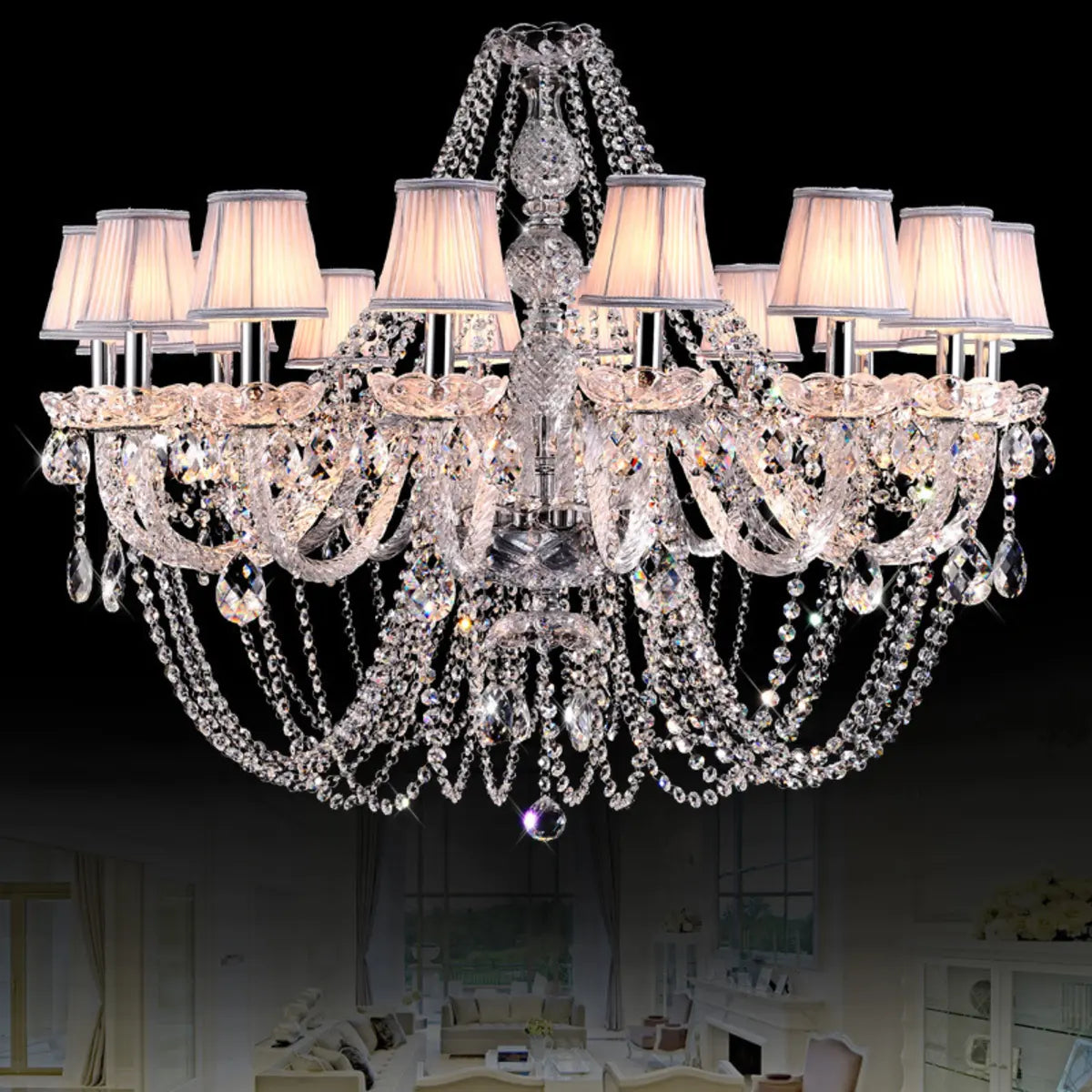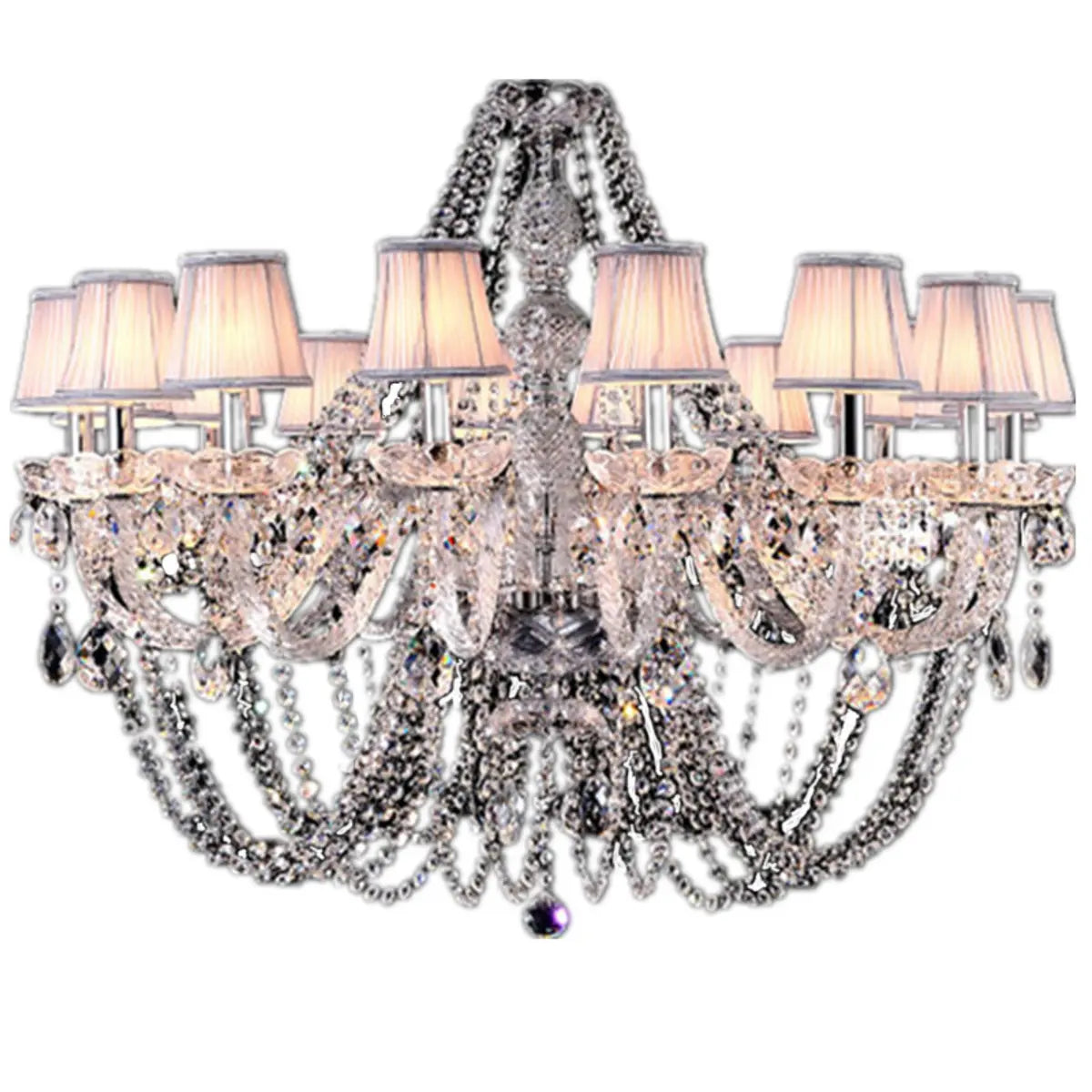 ZOWALA - Grand Silver Crystal Beads White Fabric Chandelier