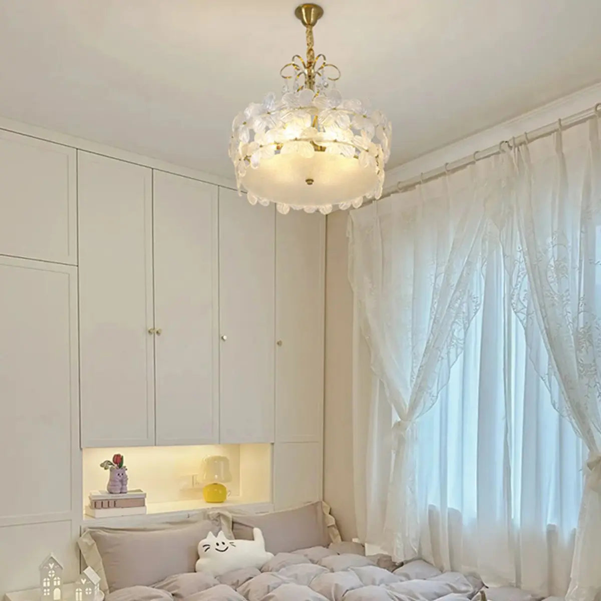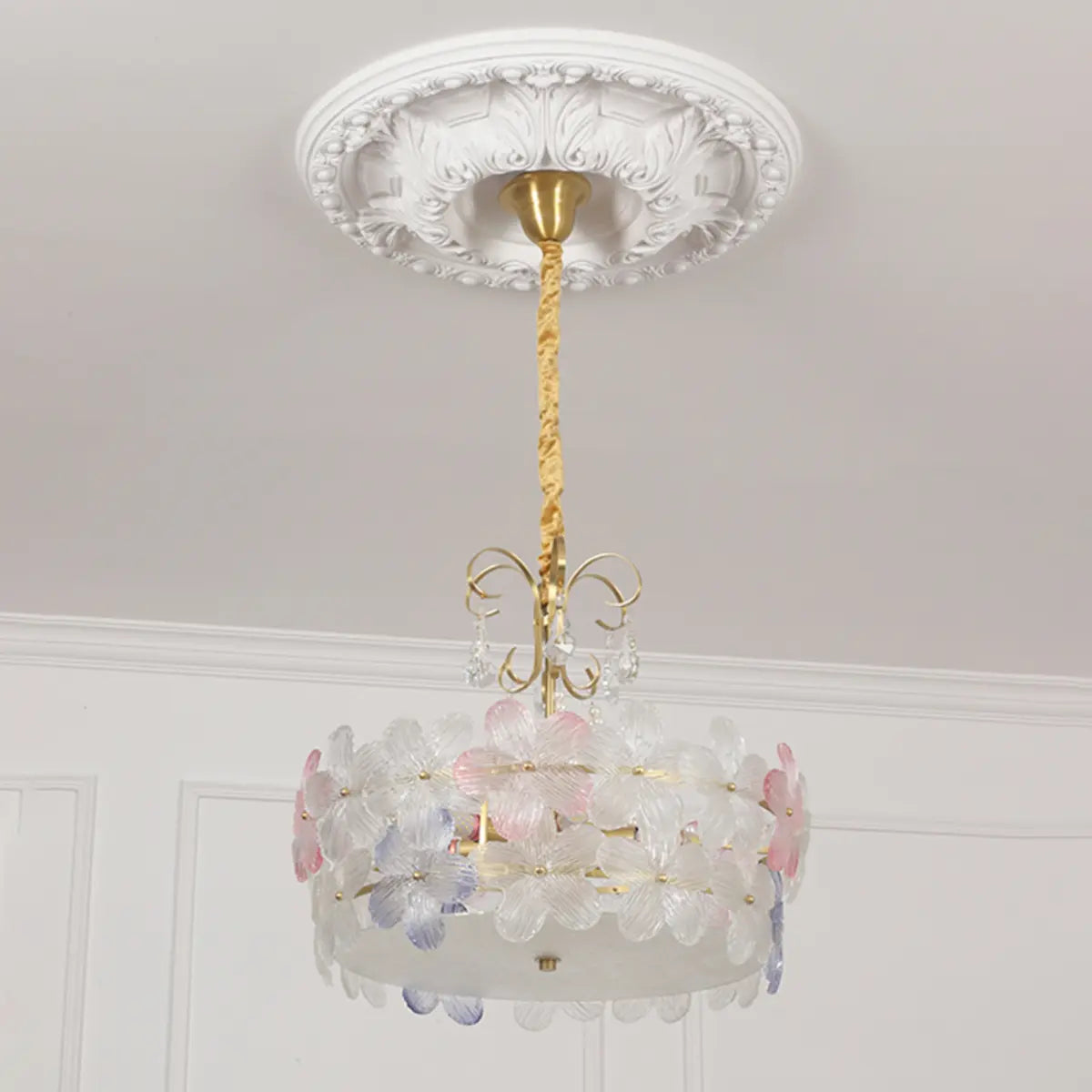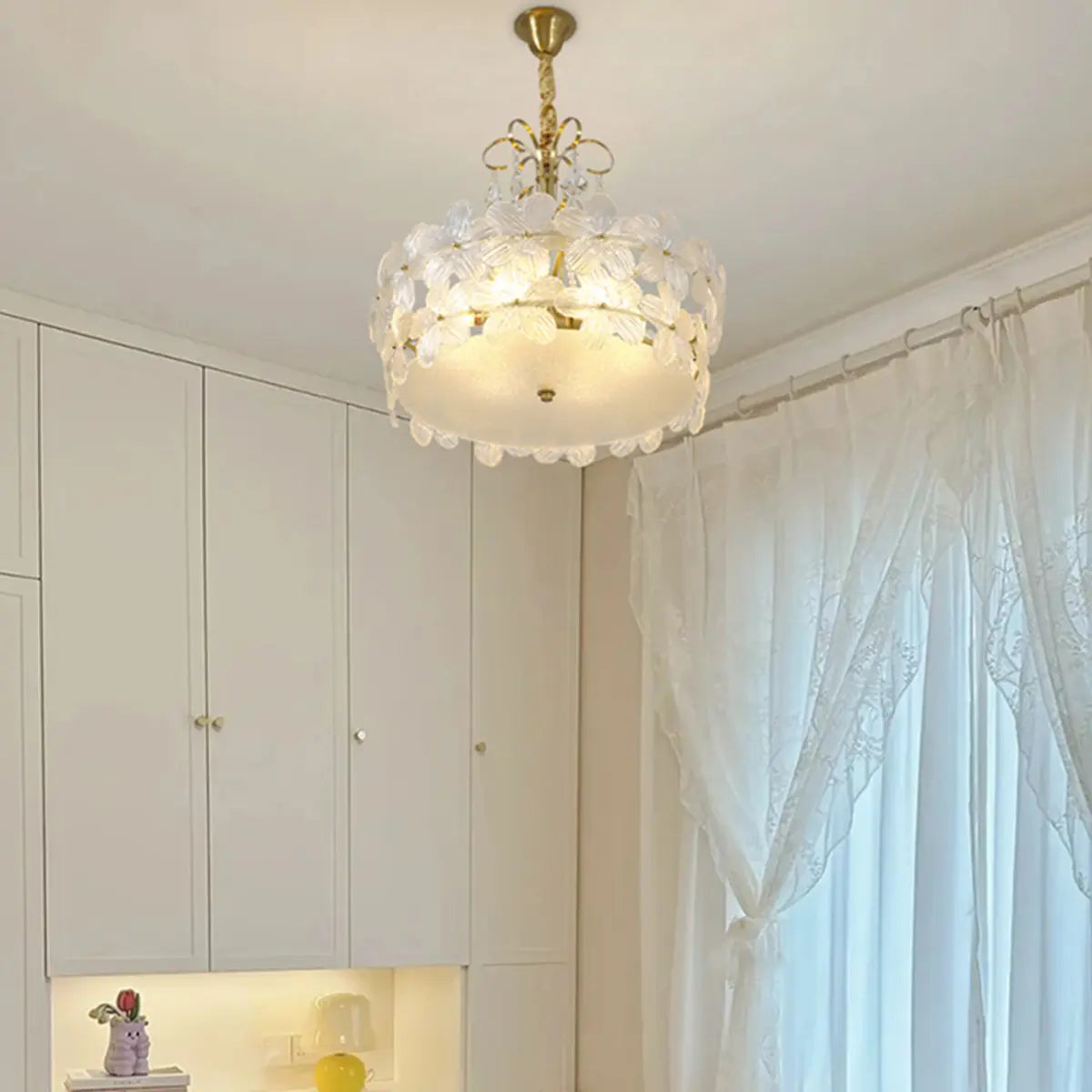 ZOWALA - Gold Glass Flower Drum Crystal Chandelier
