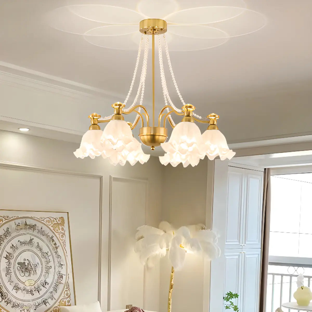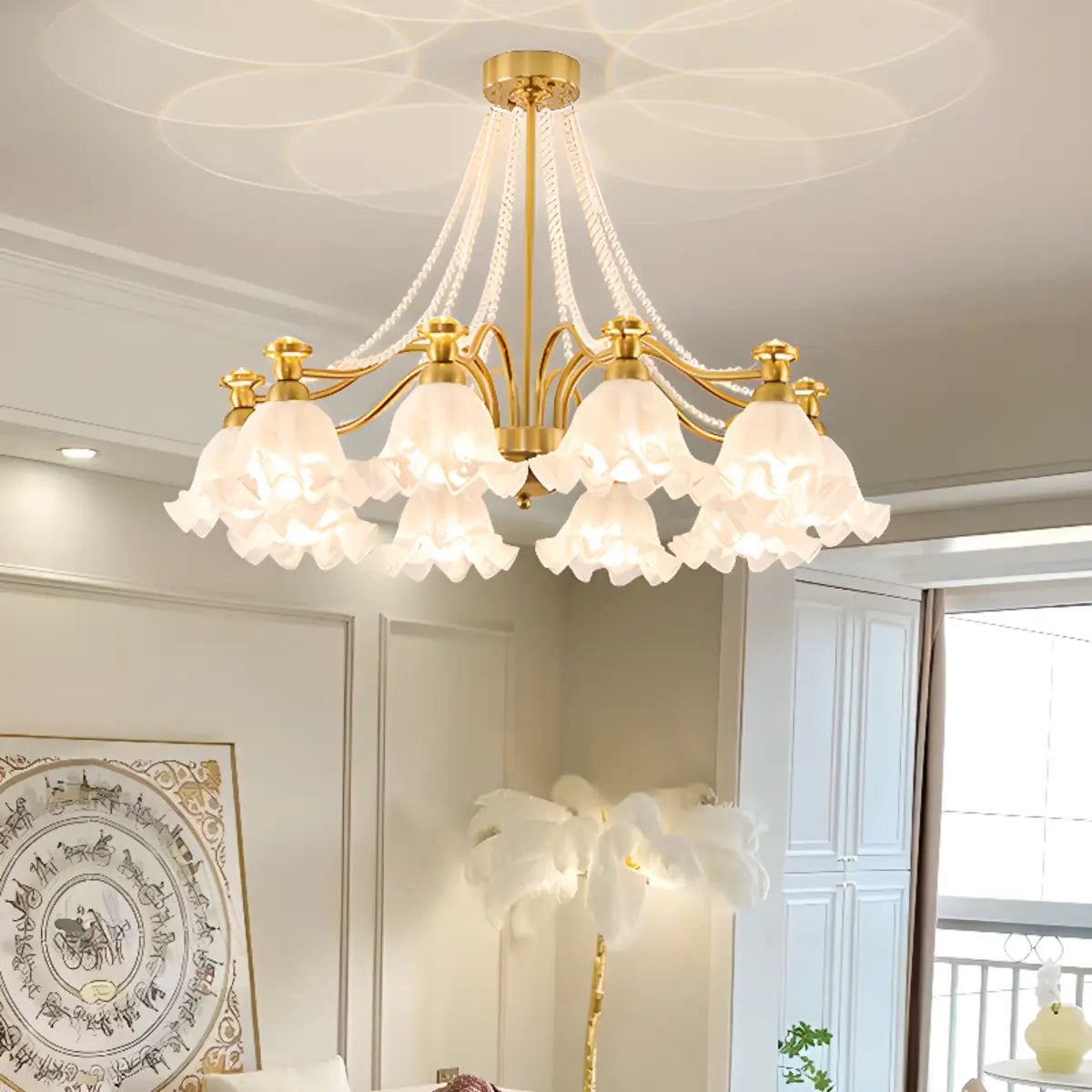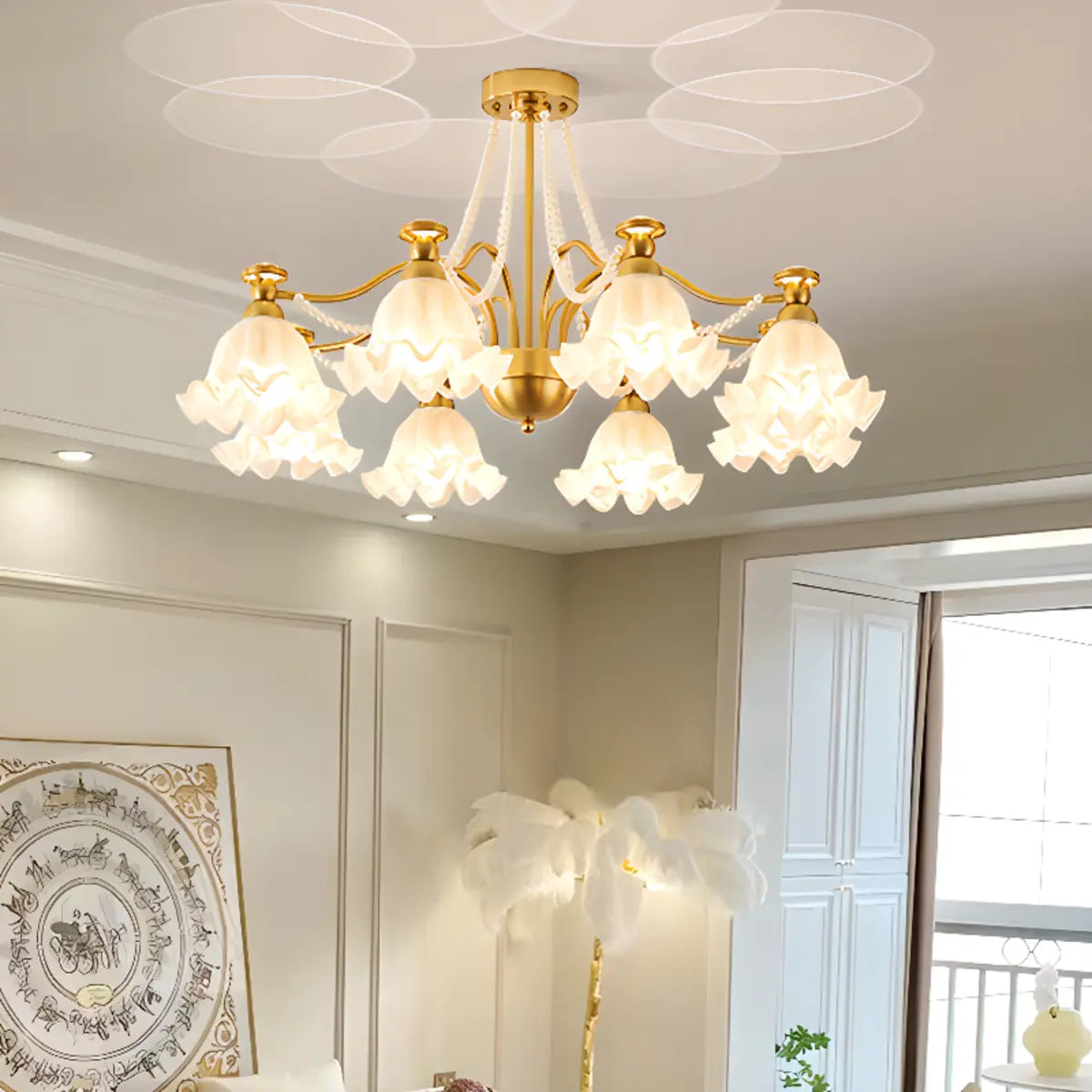 ZOWALA - Modern Flower Glass Gold Pearl Down Chandelier