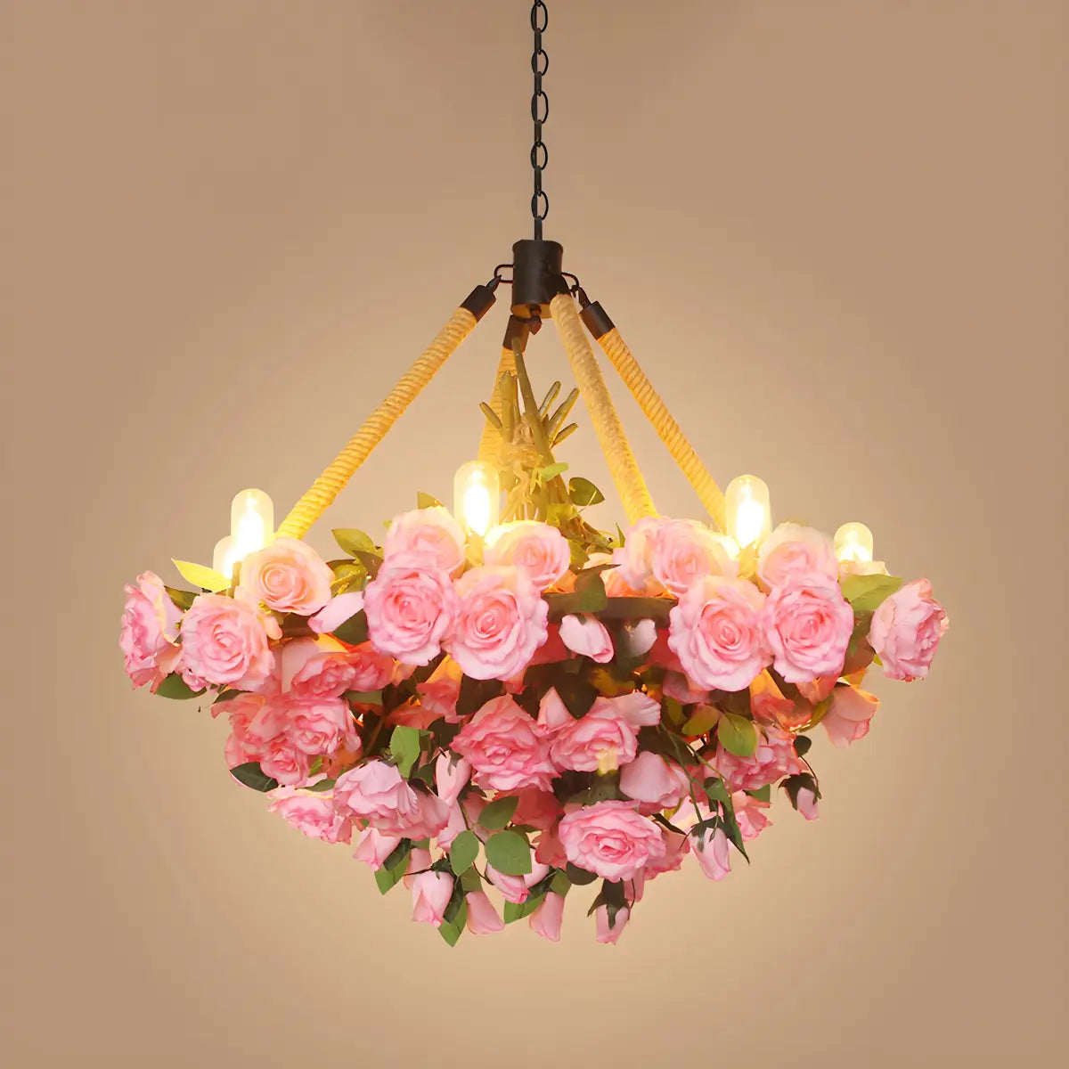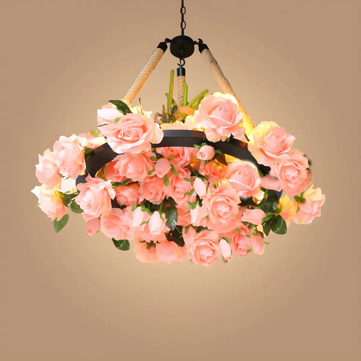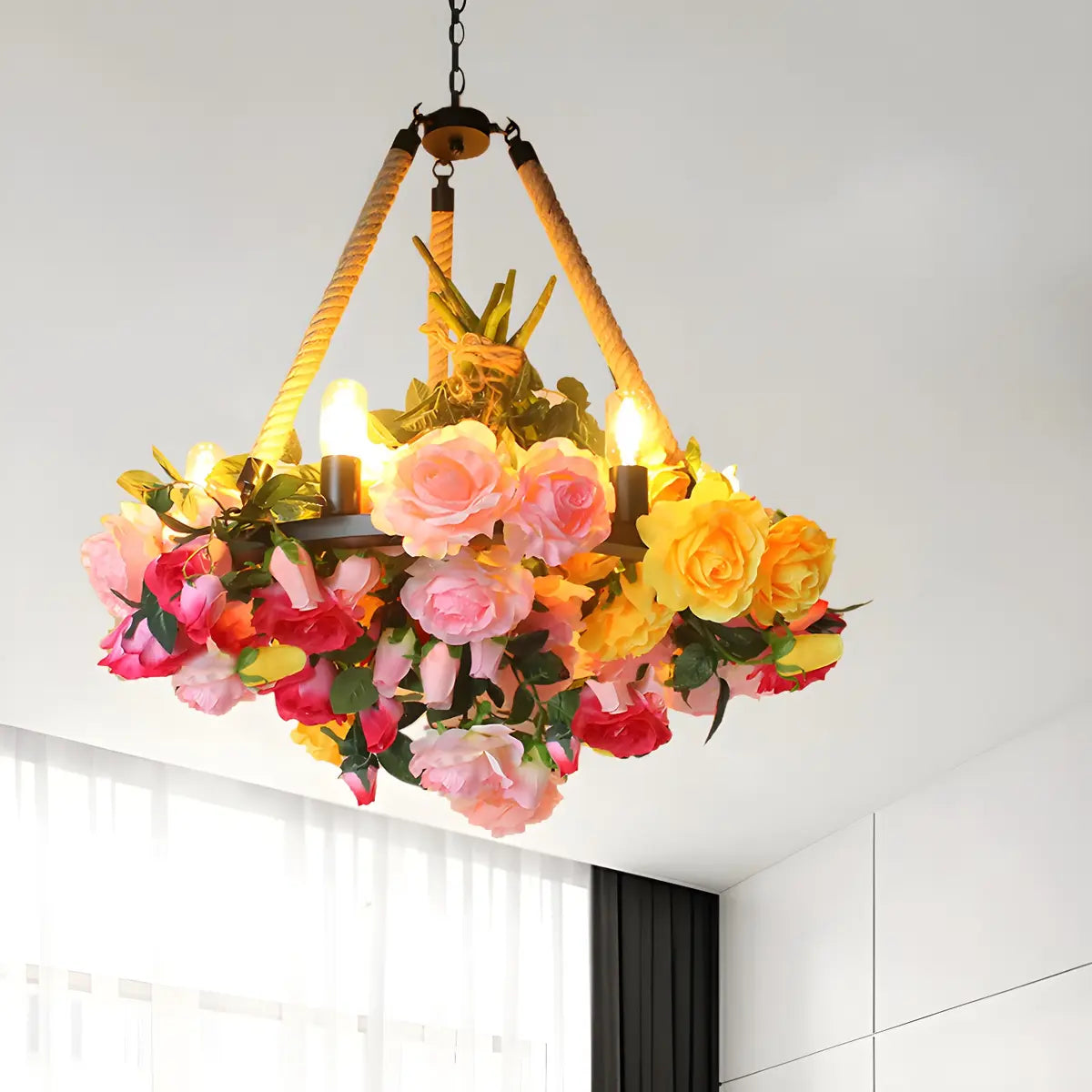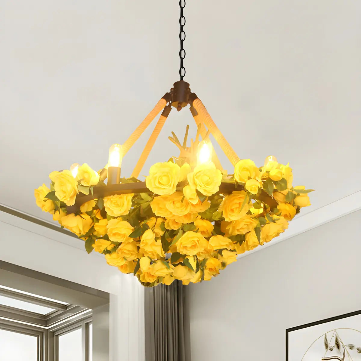 ZOWALA - Farmhouse Rope Round Flower Chandelier