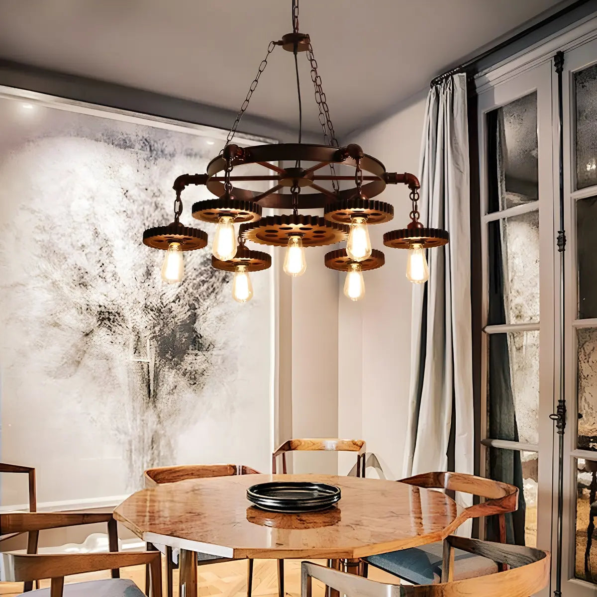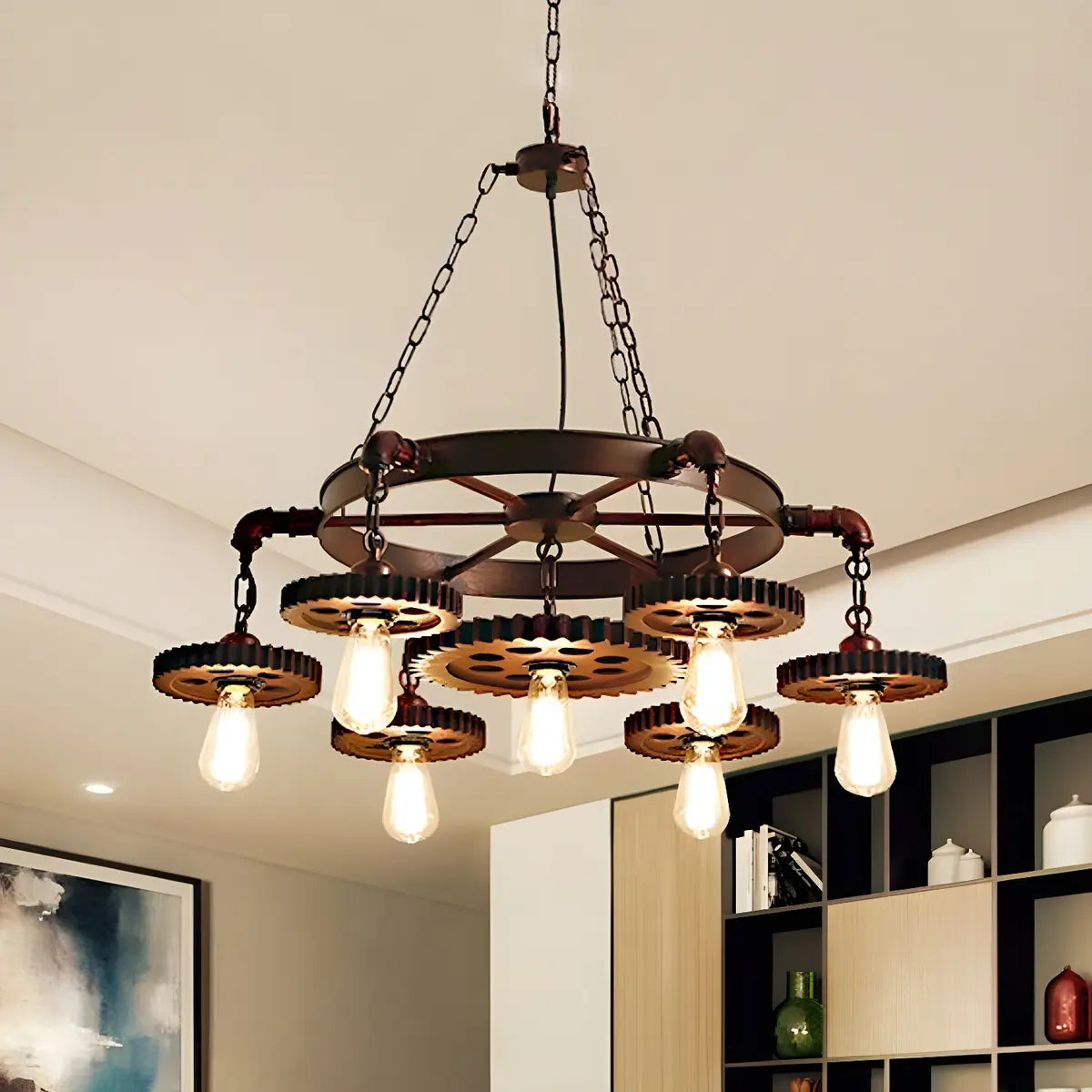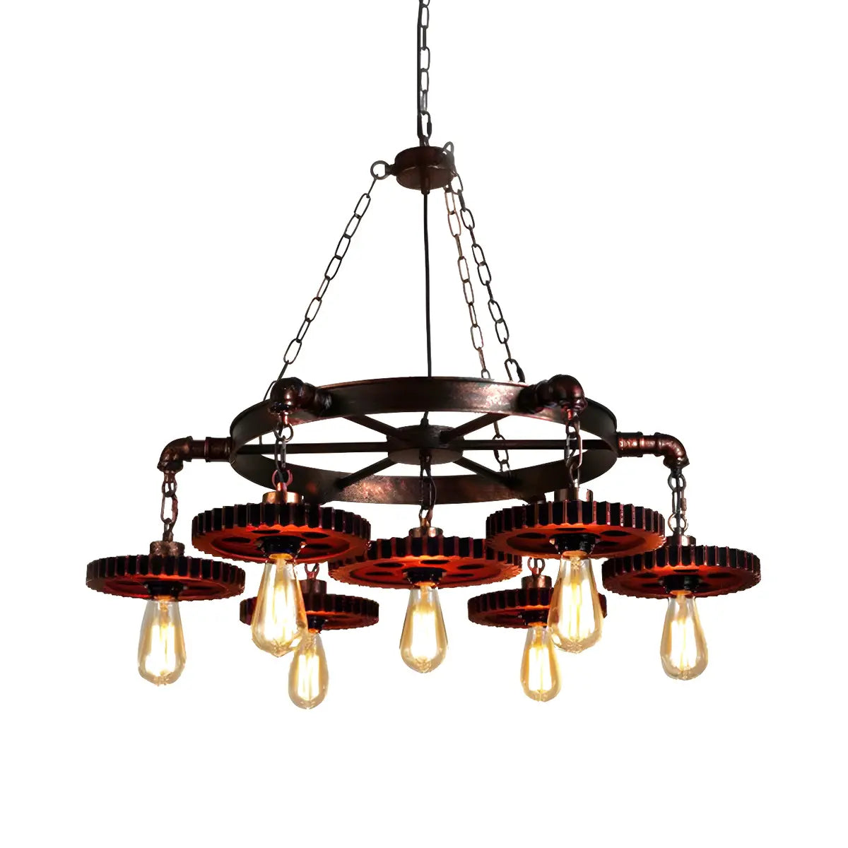 ZOWALA - Rust Industrial 7-Light Gear Open Chandelier