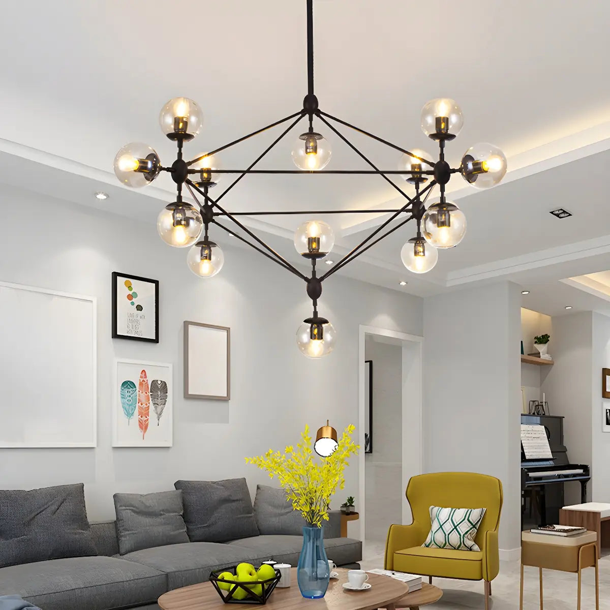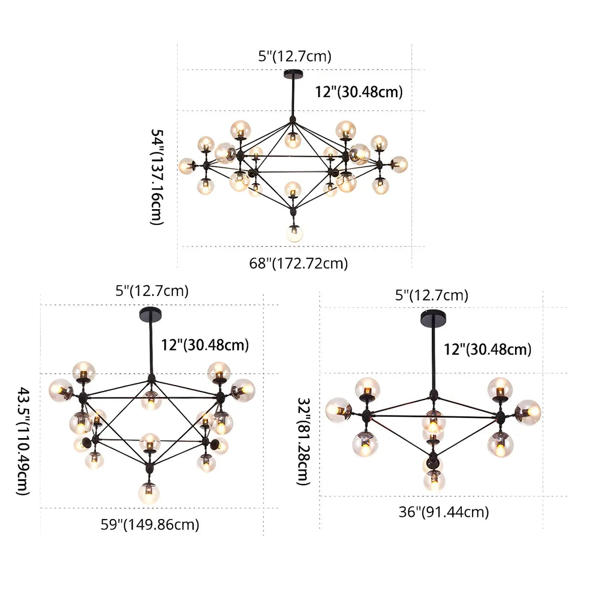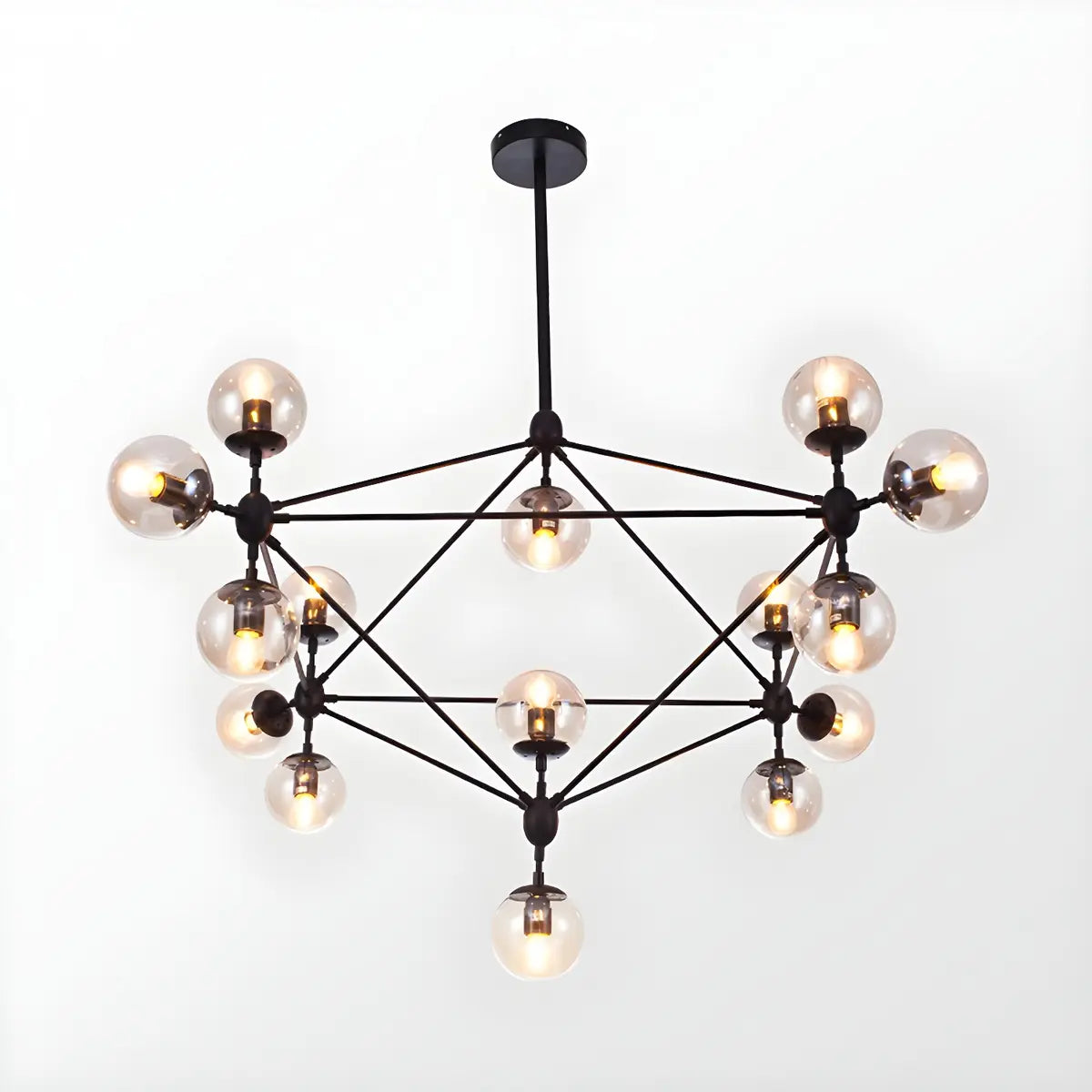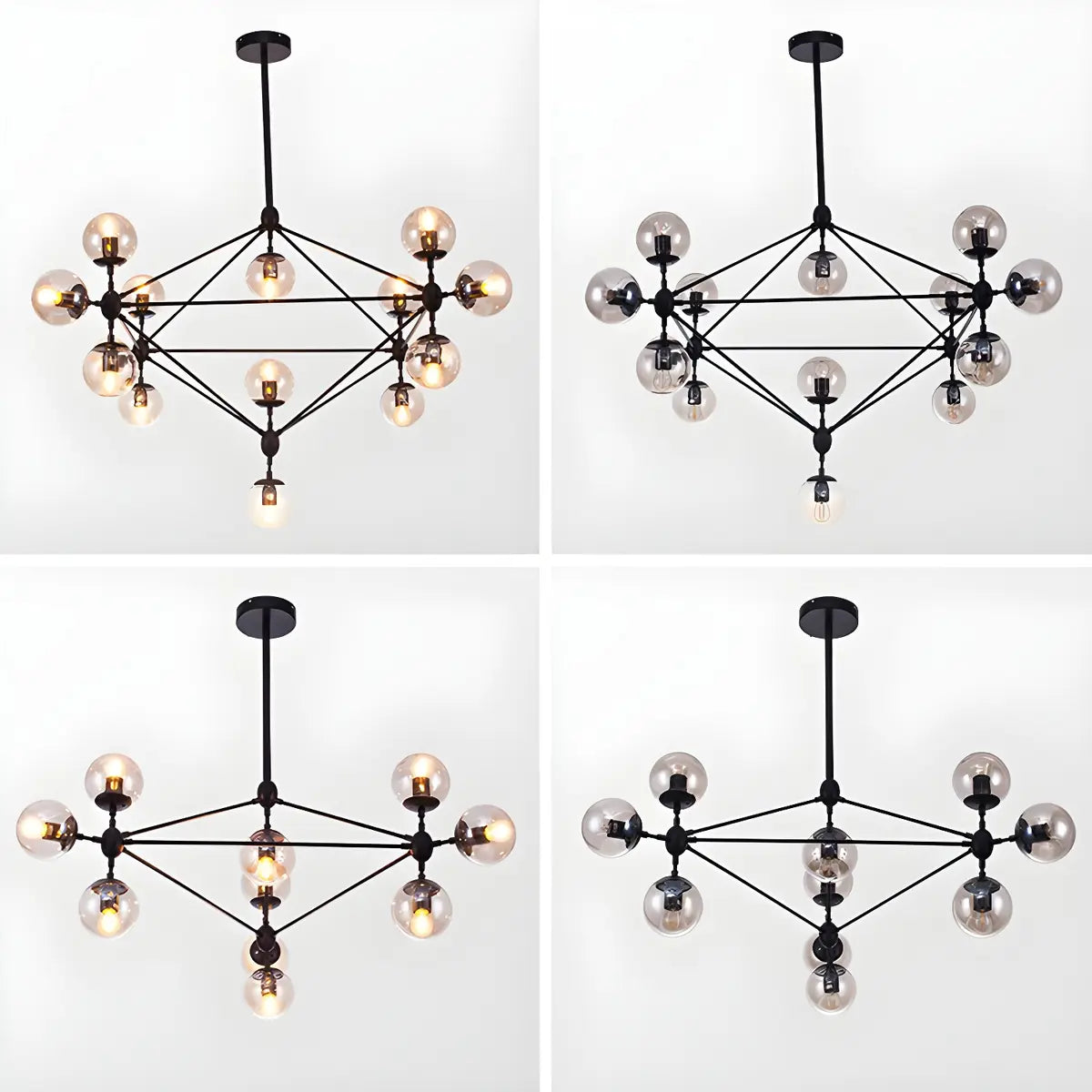 ZOWALA - Industrial Geometric Black Glass Ball Chandelier