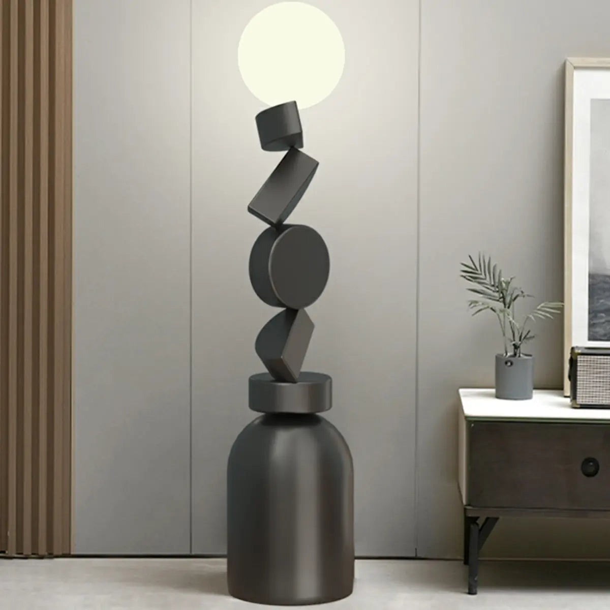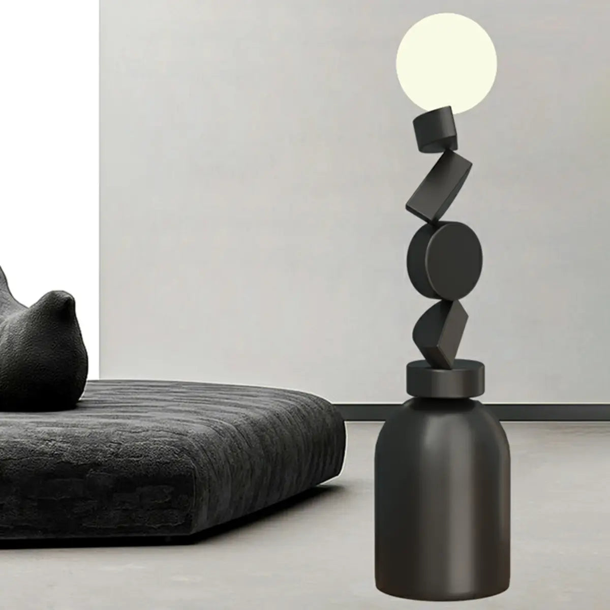 ZOWALA - Modern Geometric Stacked Block Black Floor Lamp