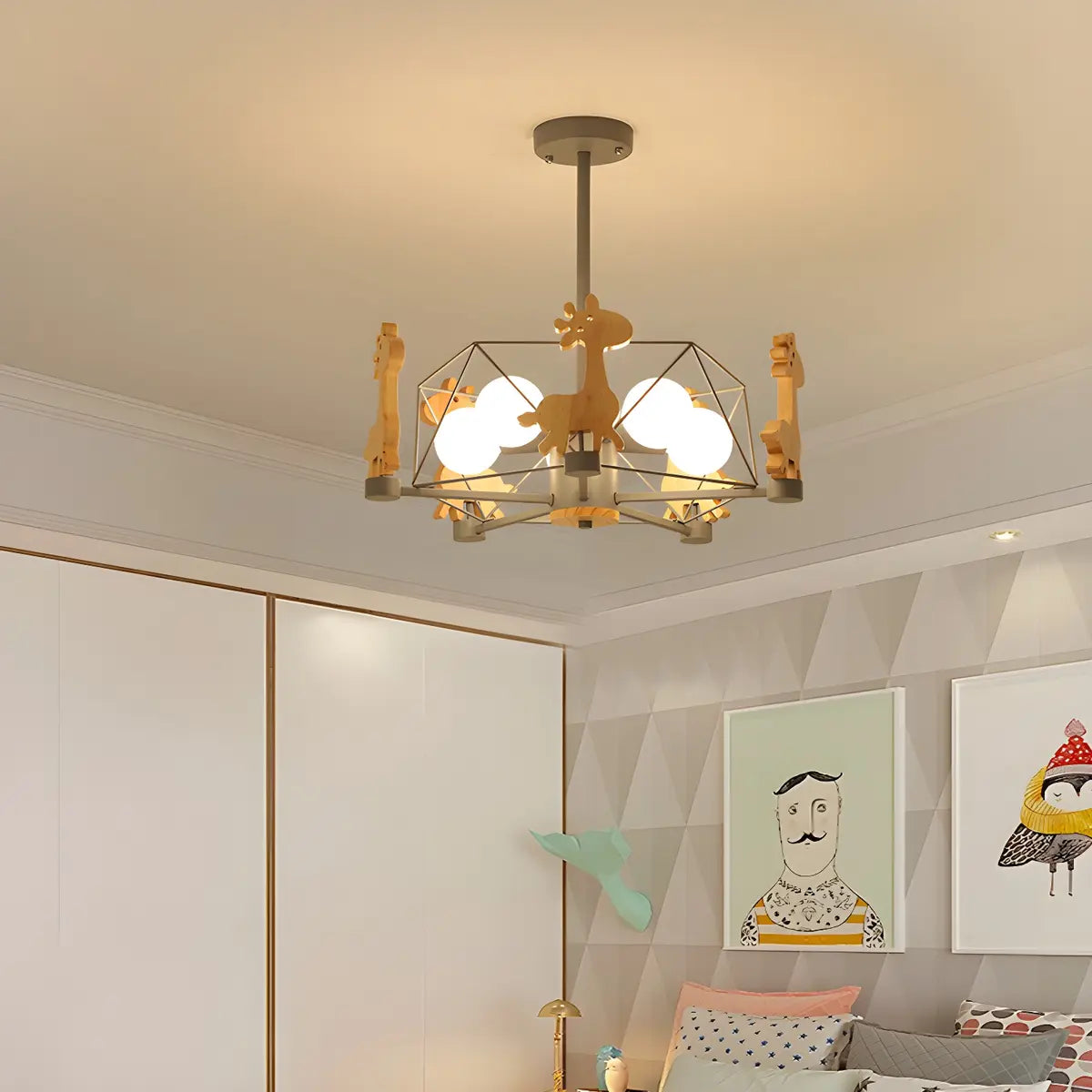 ZOWALA - Modern Wood Giraffe Metal Chandelier