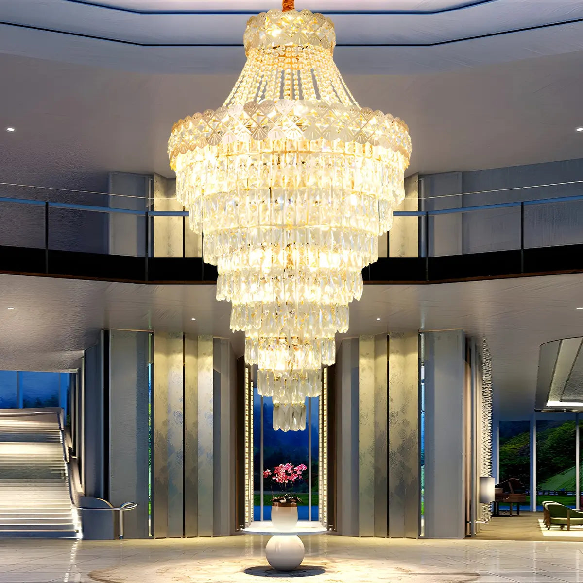 ZOWALA - Luxurious Cascading Gold Tiered Crystal Chandelier