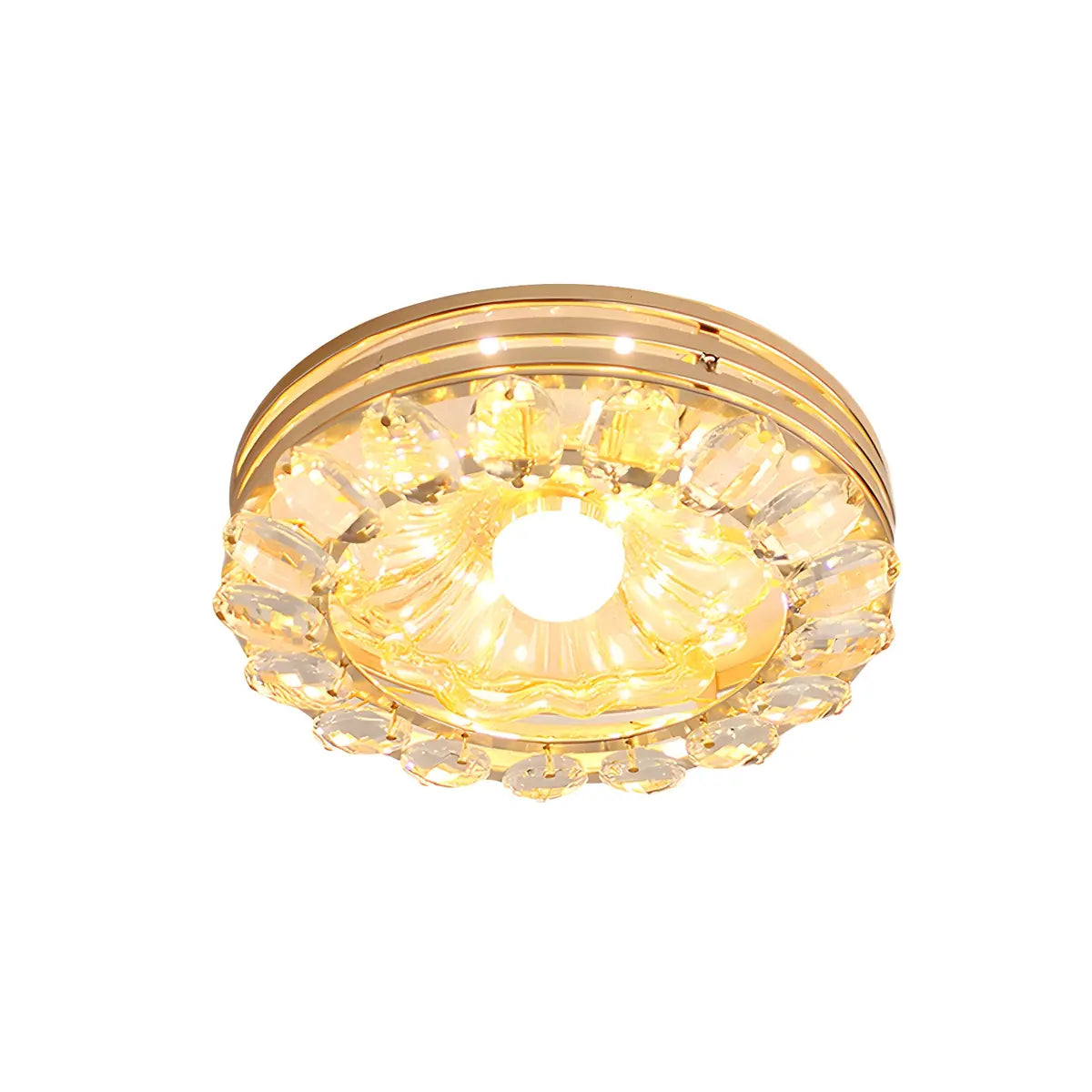 ZOWALA - Glam Flower Crystal Round Gold Flush Mount Light