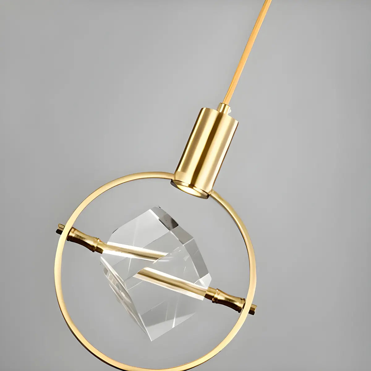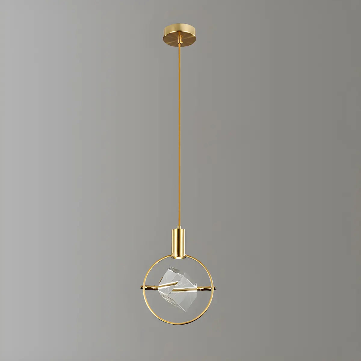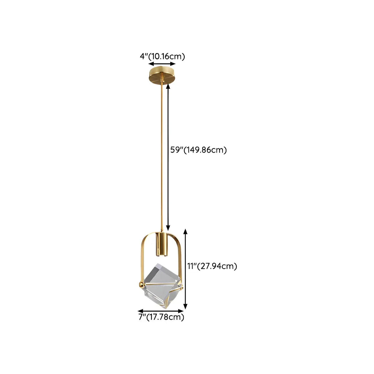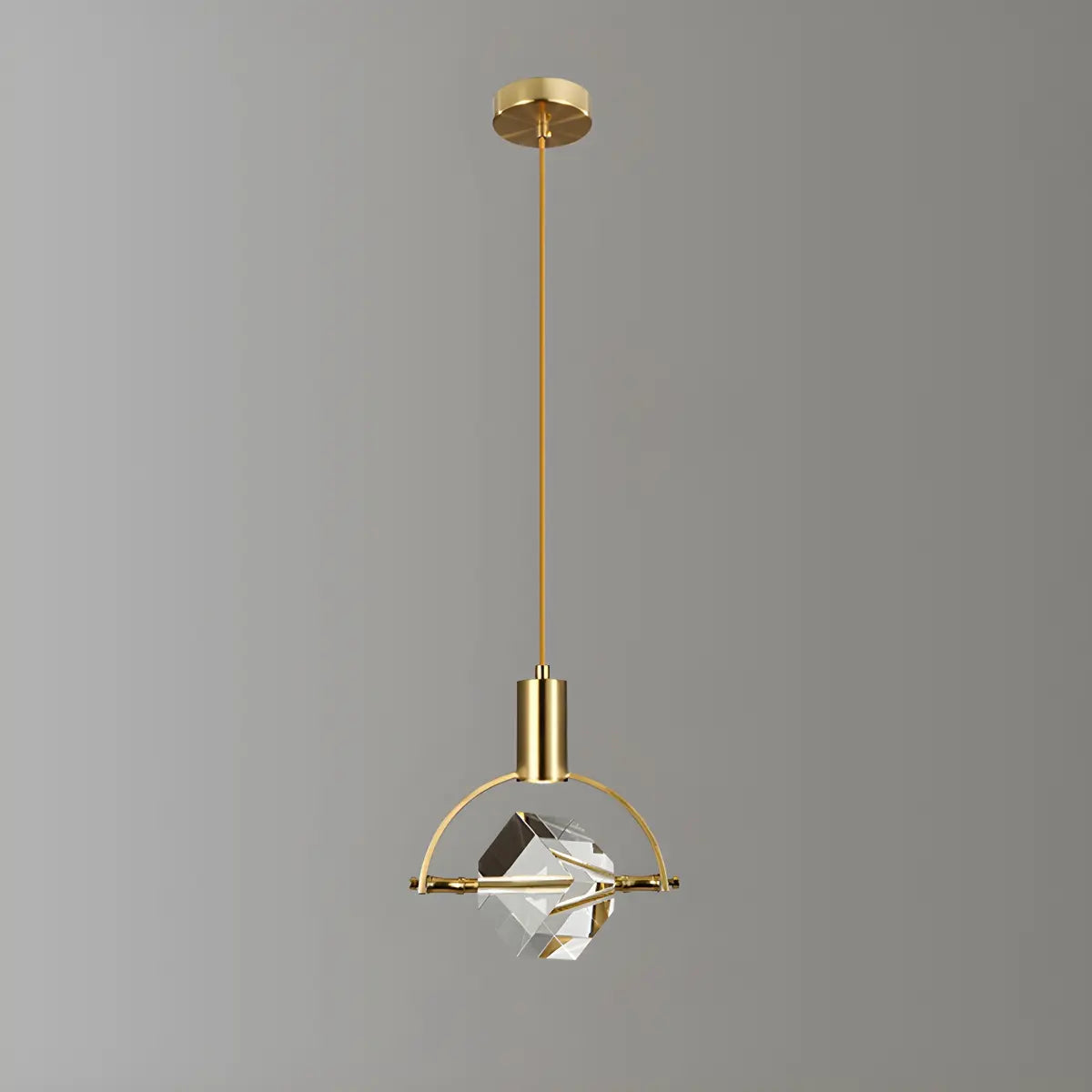 Exuding a contemporary aesthetic, this pendant lamp is crafted in gold metal to elegantly blend into any modern space. The geometric shape of the lampshade shines like a hollow diamond, filling the room with soft natural light, creating a warm and stylish atmosphere.