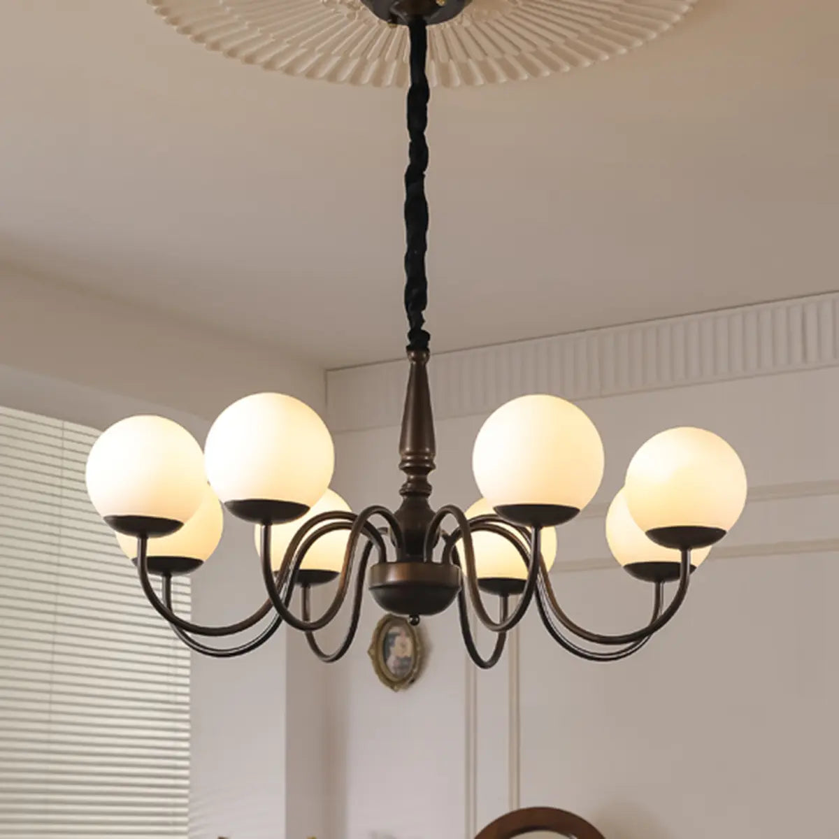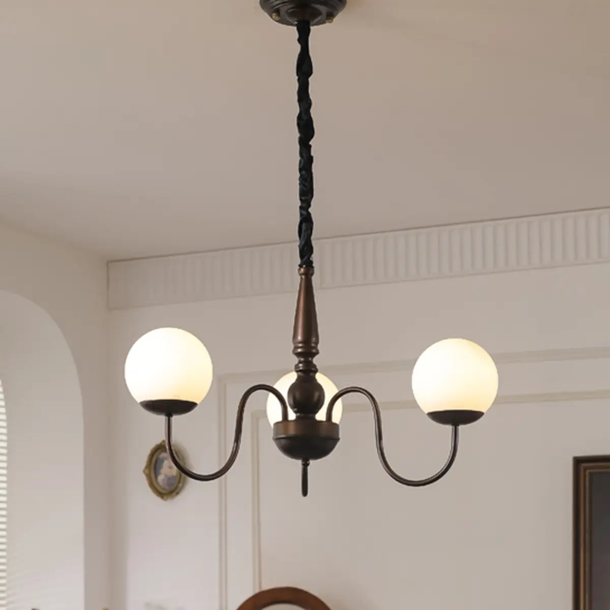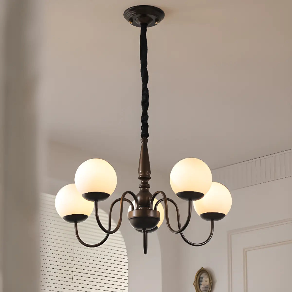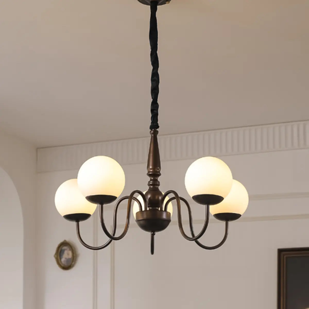 ZOWALA - Simple Brown Metal White Glass Ball Chandelier