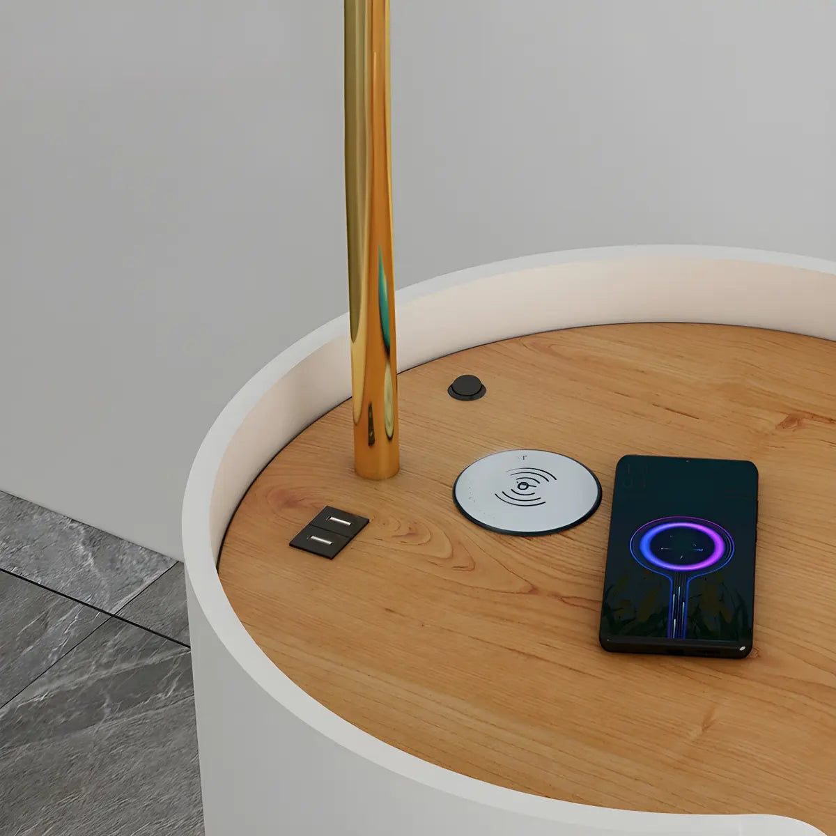 ZOWALA - Gold Adjustable White Cone Floor Lamp with Storage