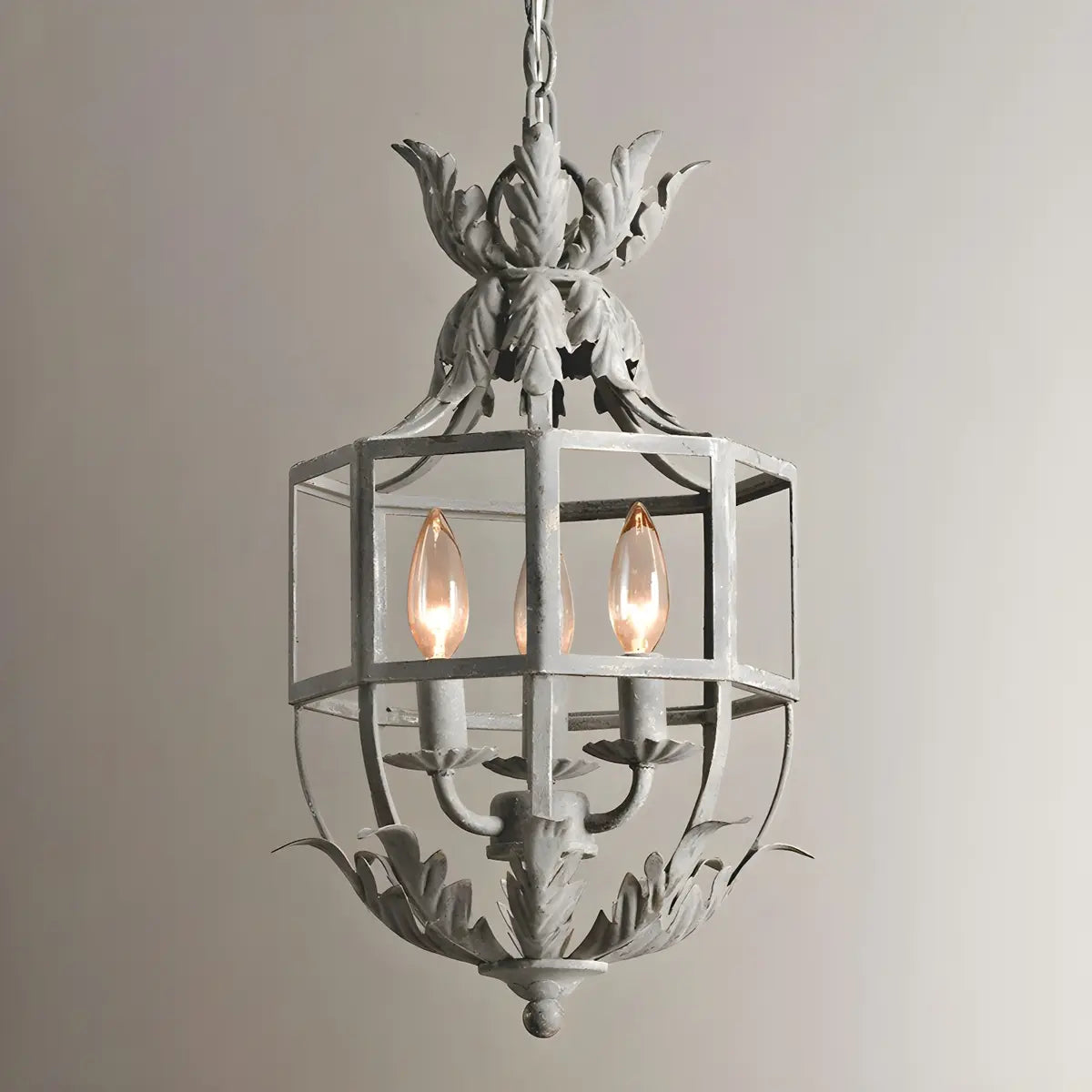 ZOWALA - Industrial Aged Gray Iron Cage Candlestick Chandelier