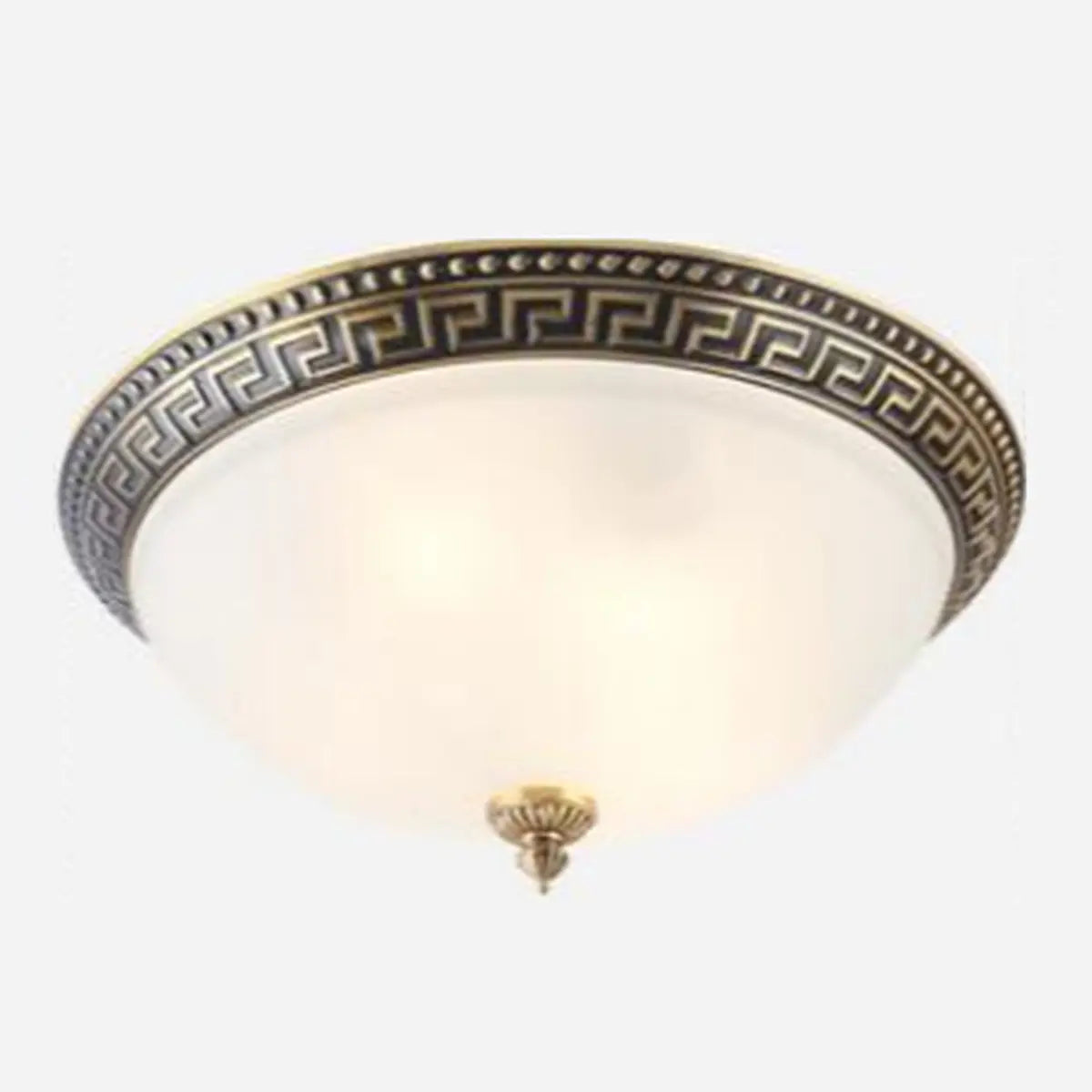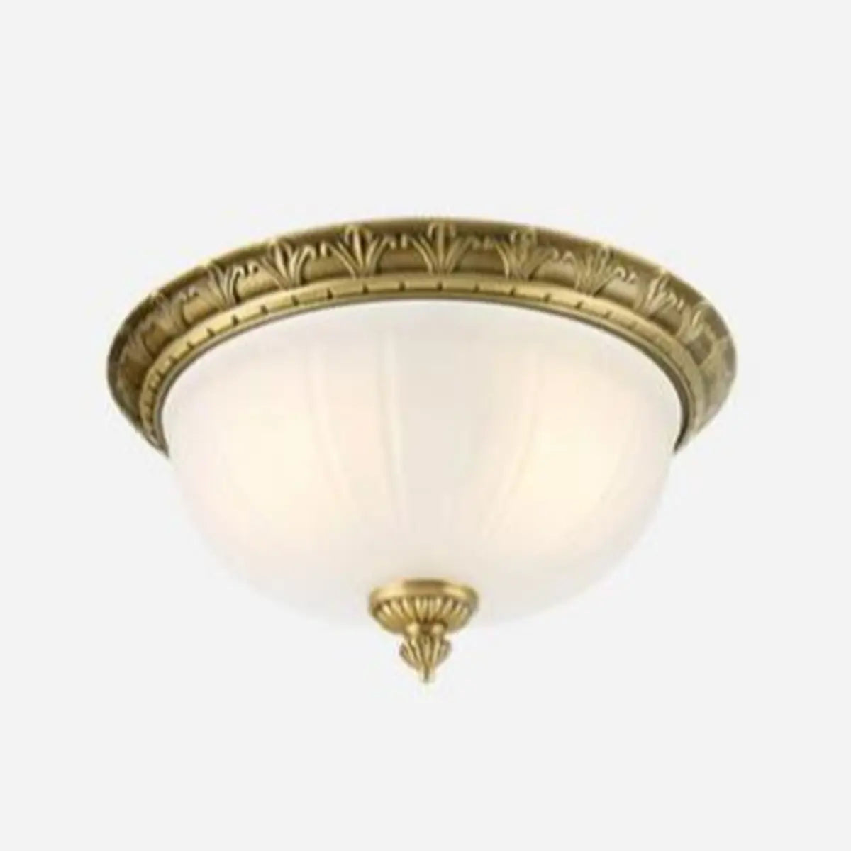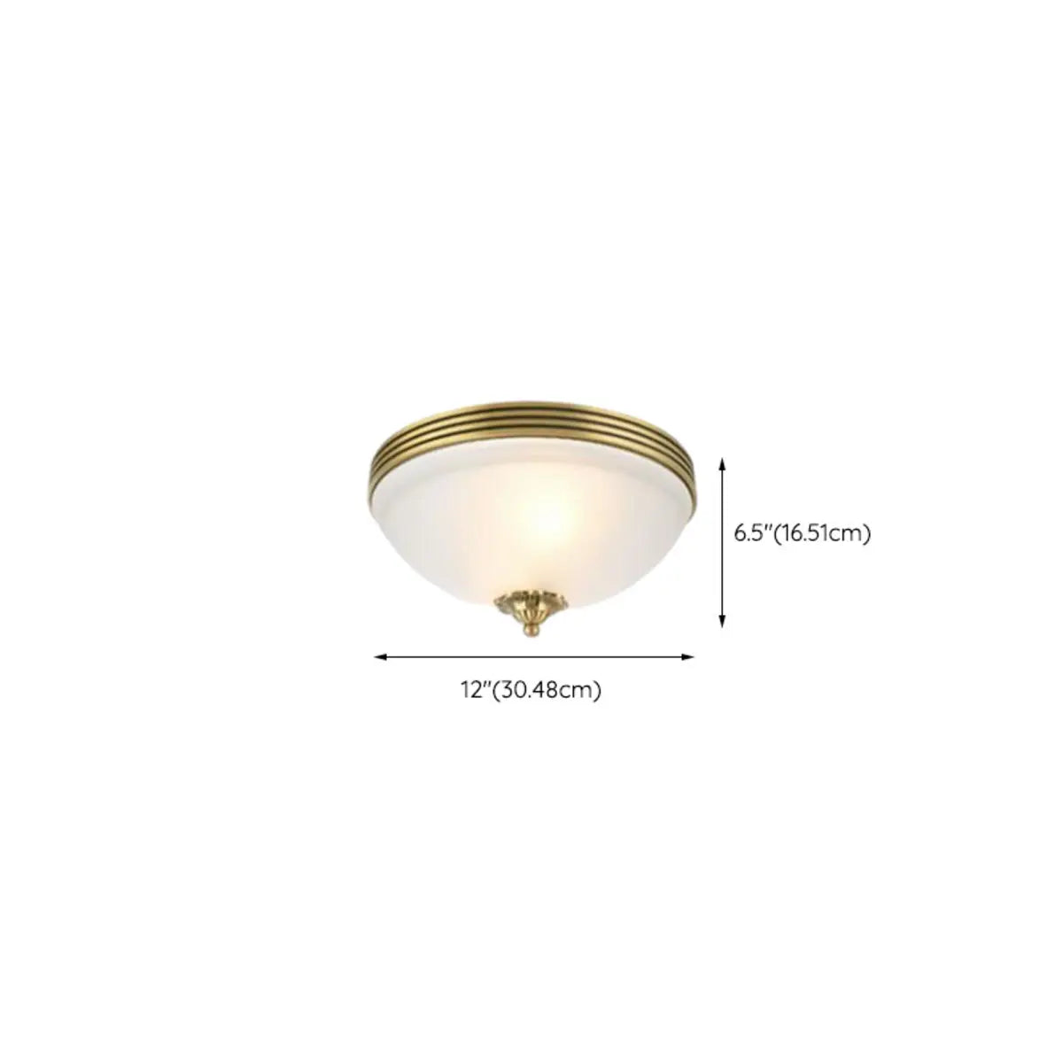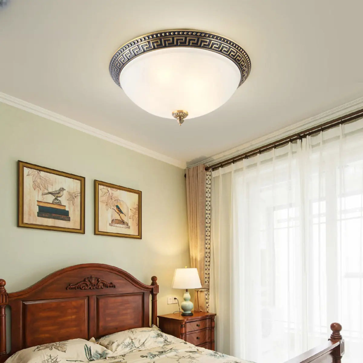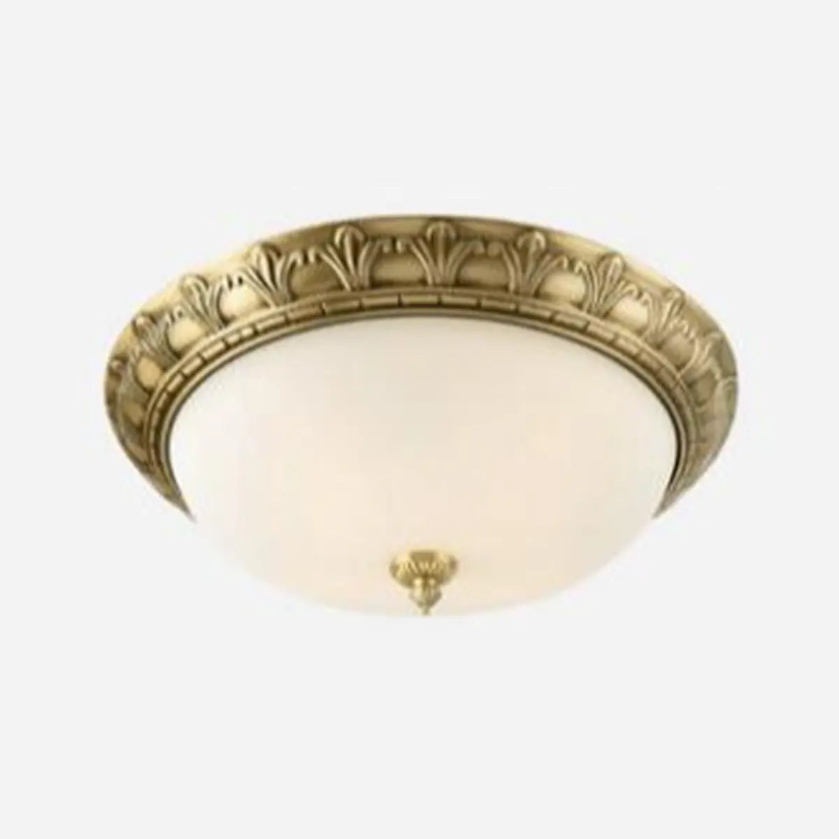 ZOWALA - Oriental Brass White Glass Bowl Flush Mount Light
