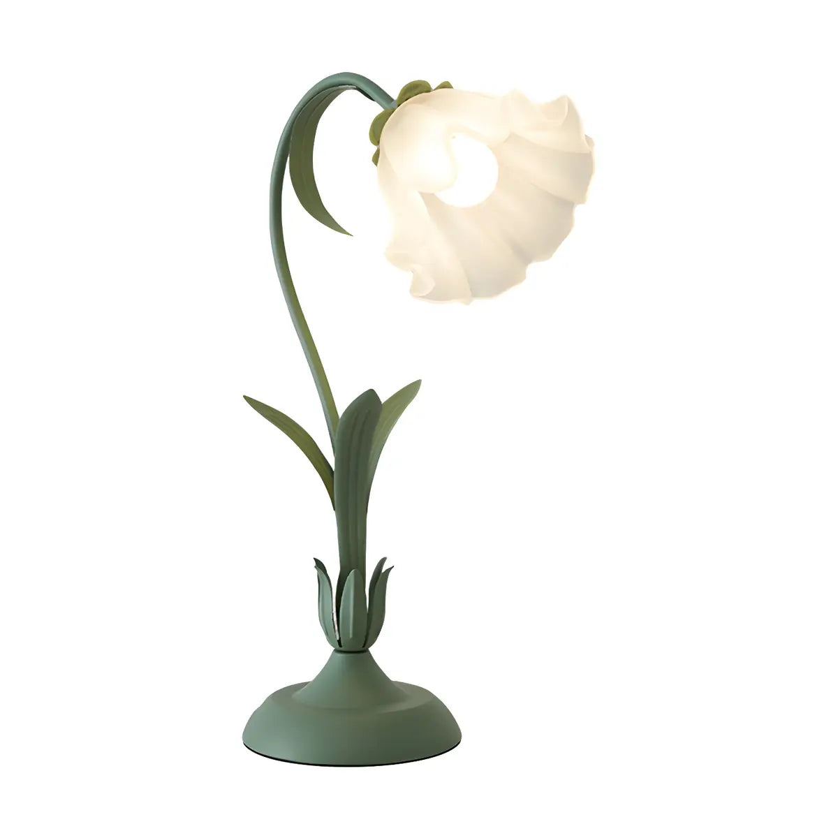 ZOWALA - Green Curved White Glass Flower Table Lamp