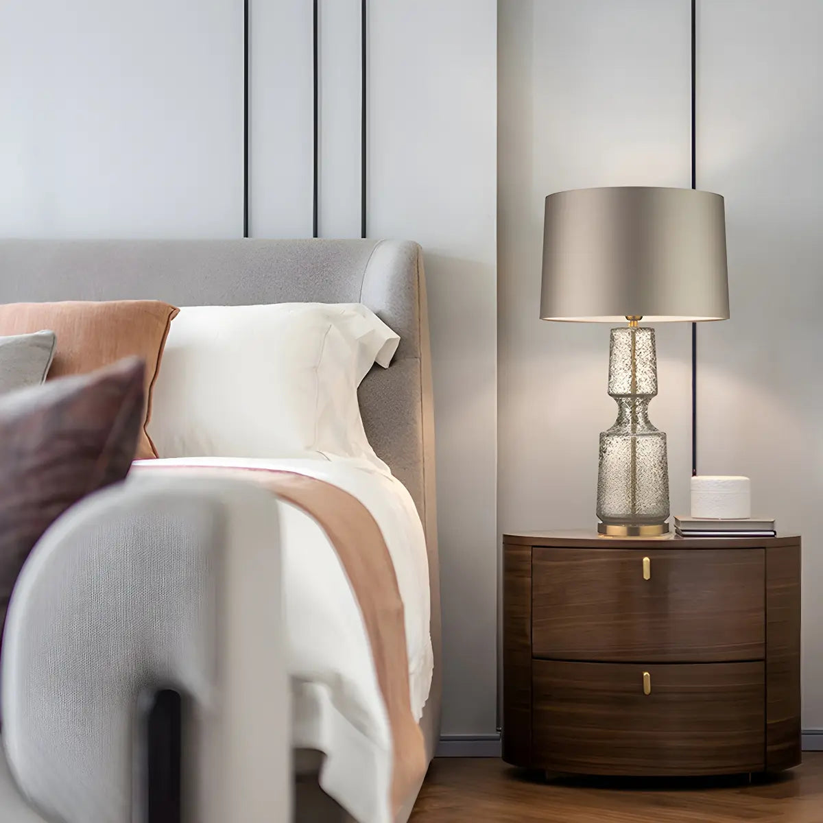- The table lamp provides even and soft light, which is suitable for creating an atmosphere in the bedroom or living room, making your space instantly warm.