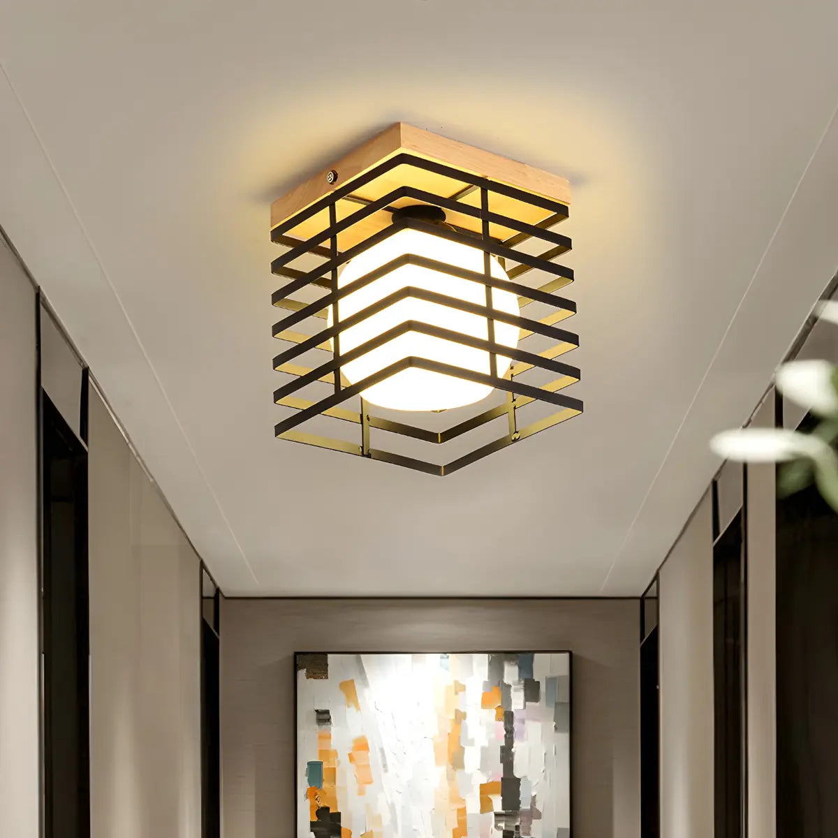 - This square cage ceiling lamp combines metal material to add a modern and simple style to corridors or small spaces.