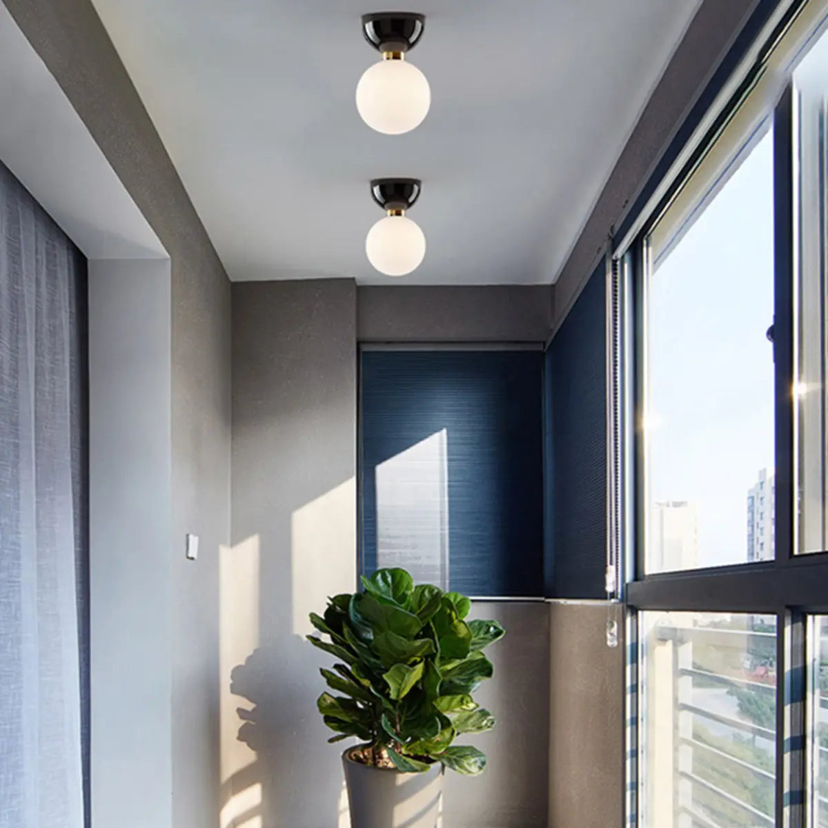 ZOWALA - Modern White Glass Globe Semi-Flush Mount Light