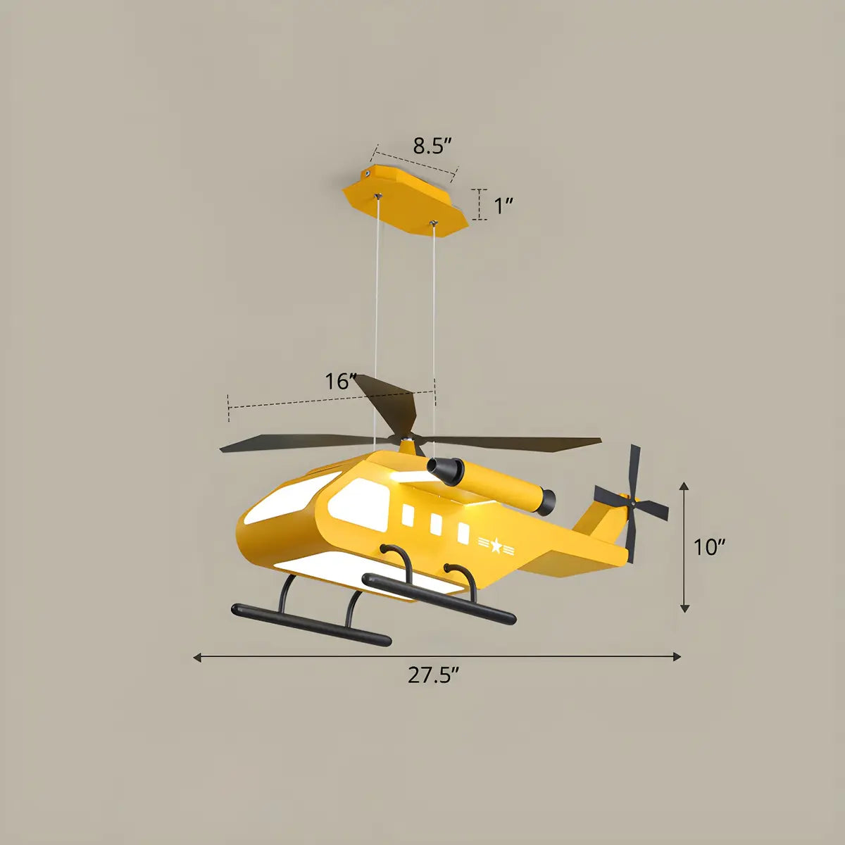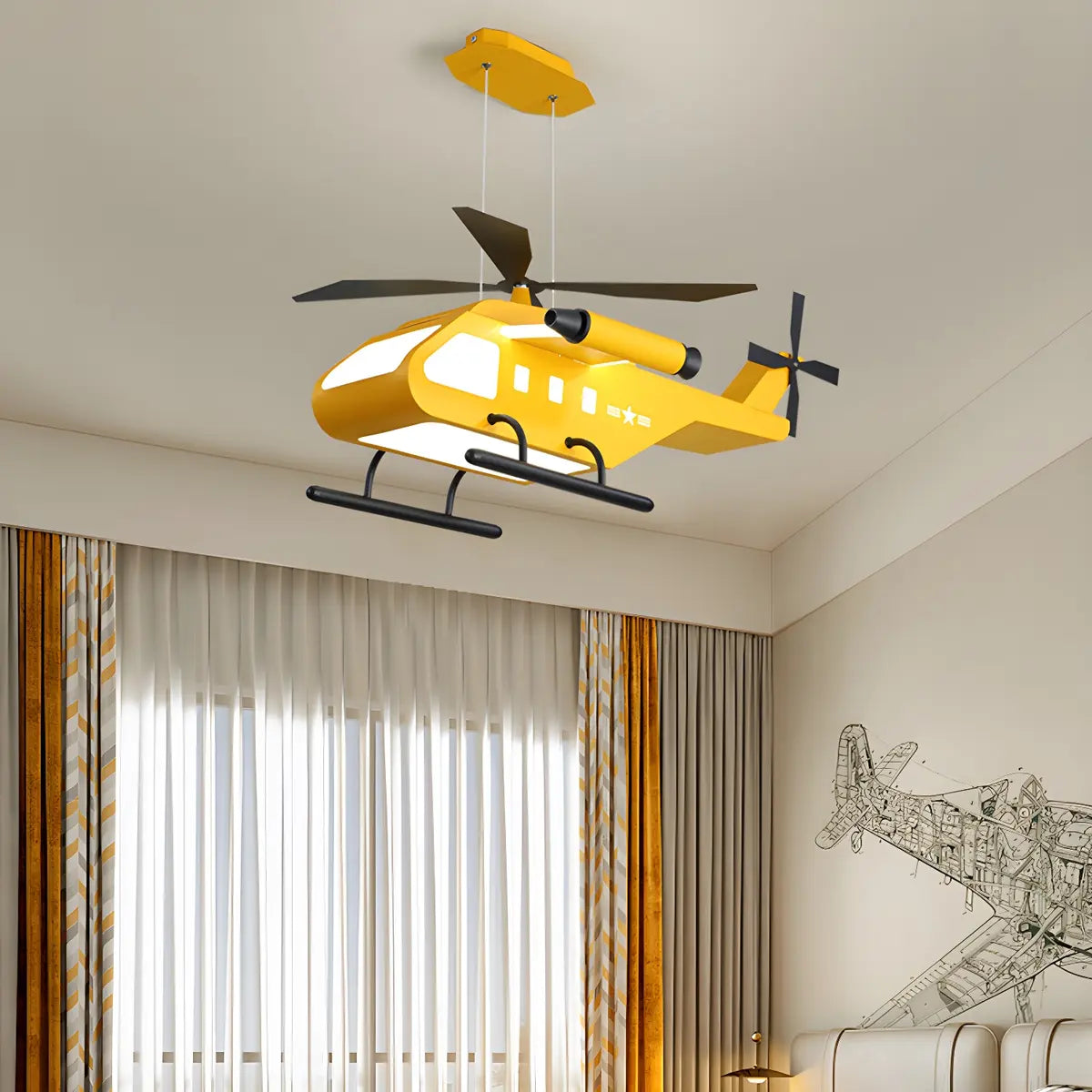 This helicopter-shaped chandelier adds a touch of fun and vitality to a child's room with its unique design. Its large size is suitable for spacious rooms and instantly becomes the visual center.