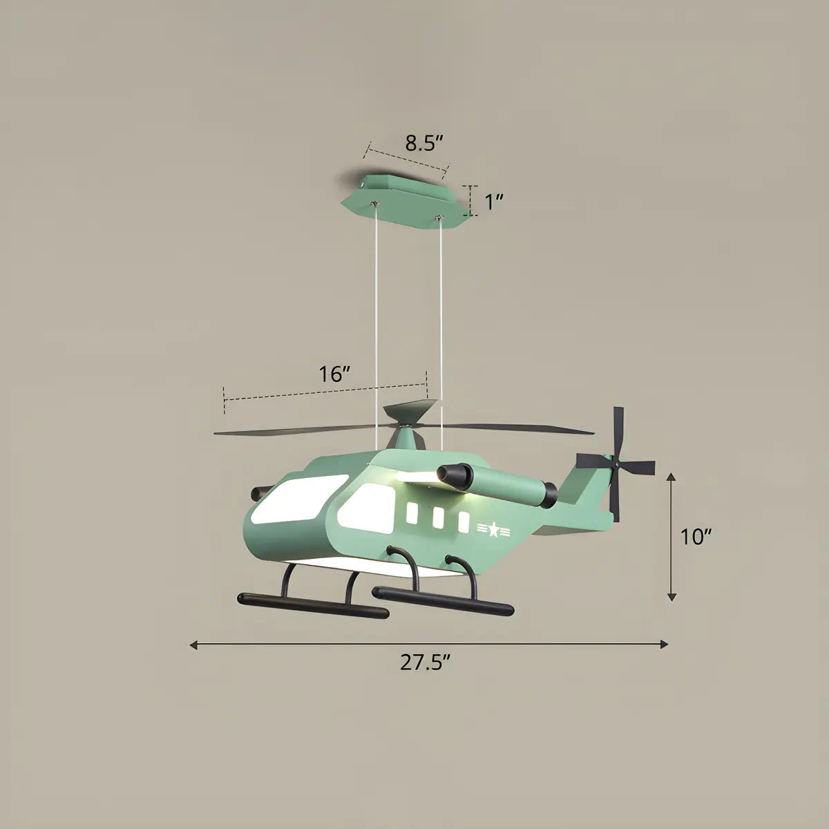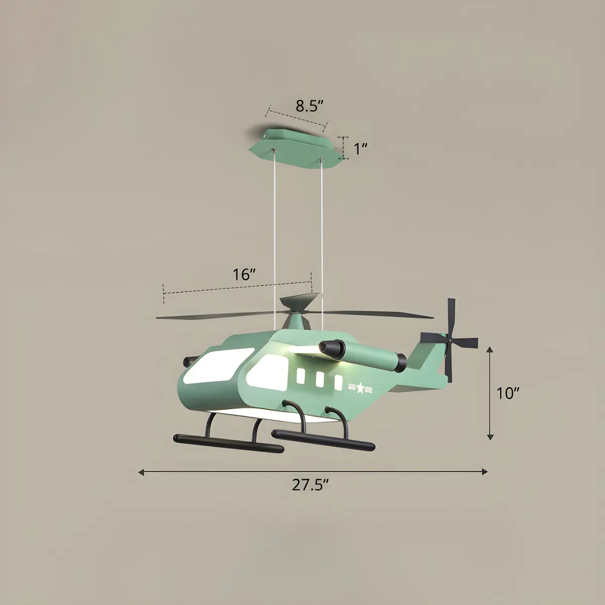 ZOWALA - Kids Green Helicopter Metal LED Chandelier