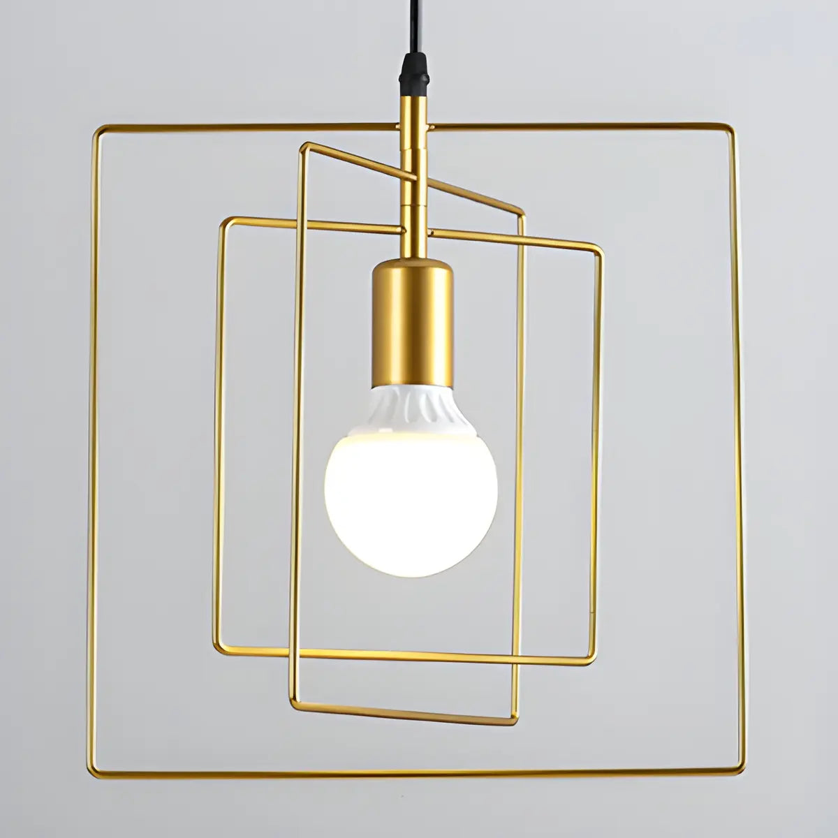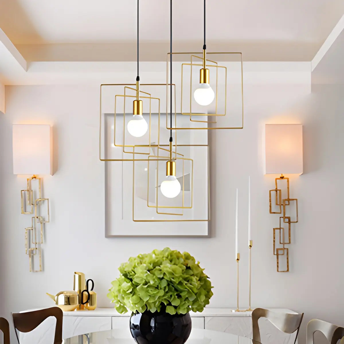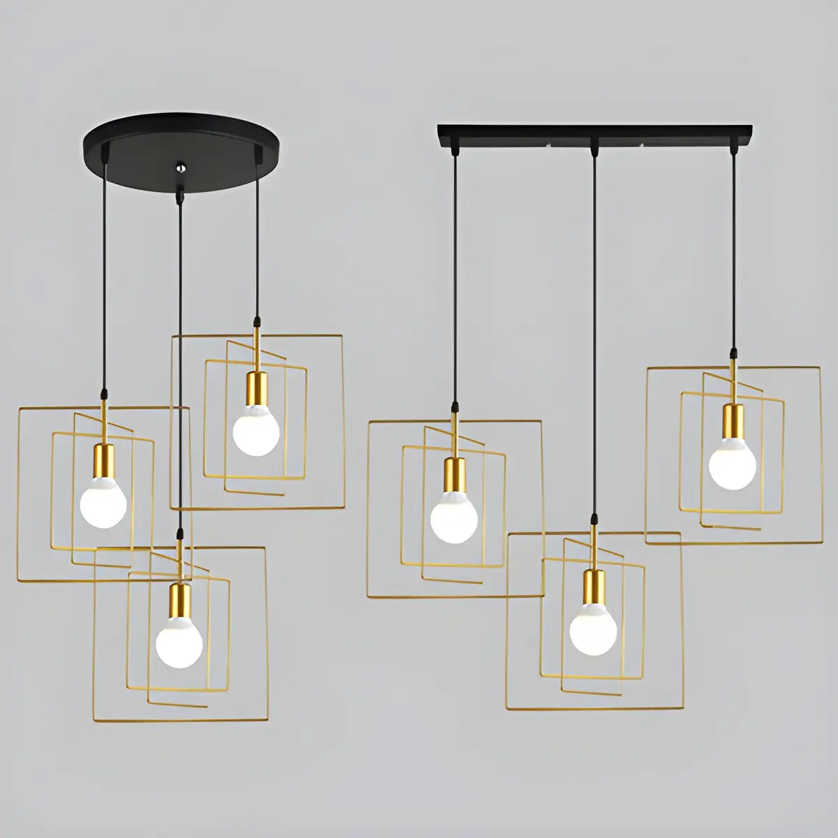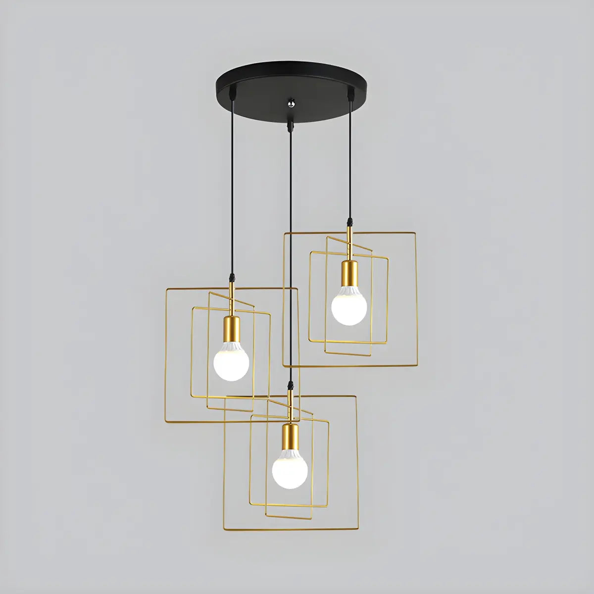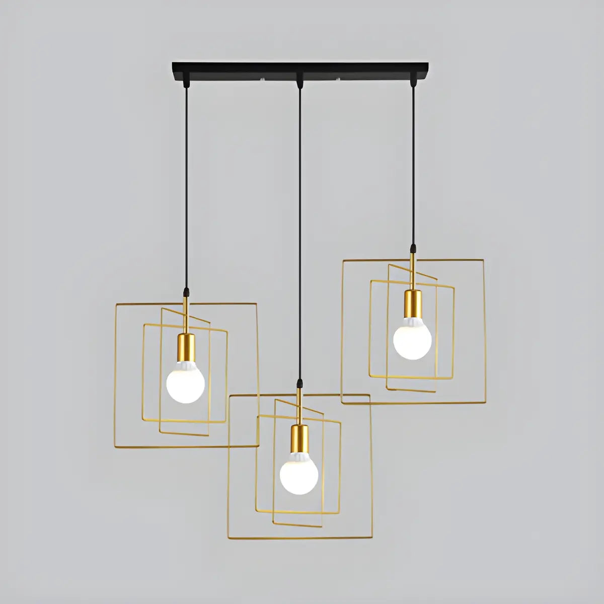 ZOWALA - Industrial 3-Light Gold Squared Frame Pendant Light