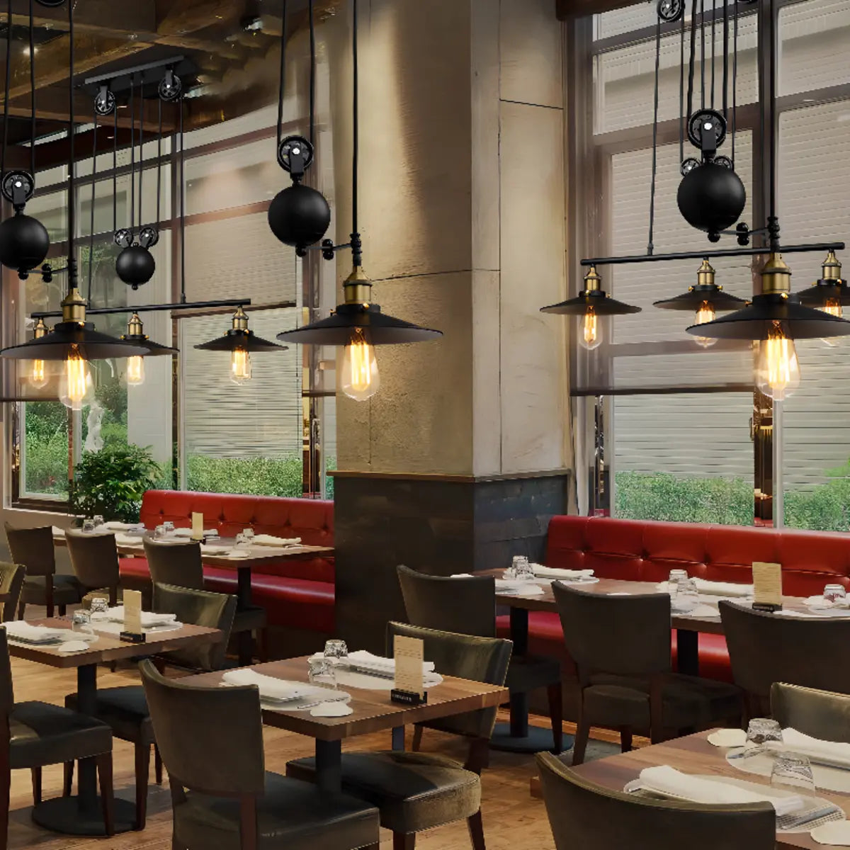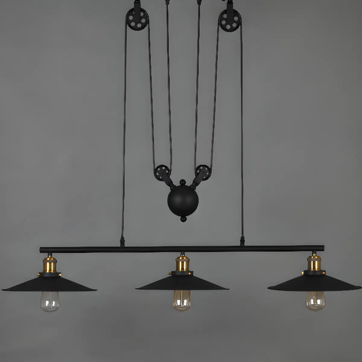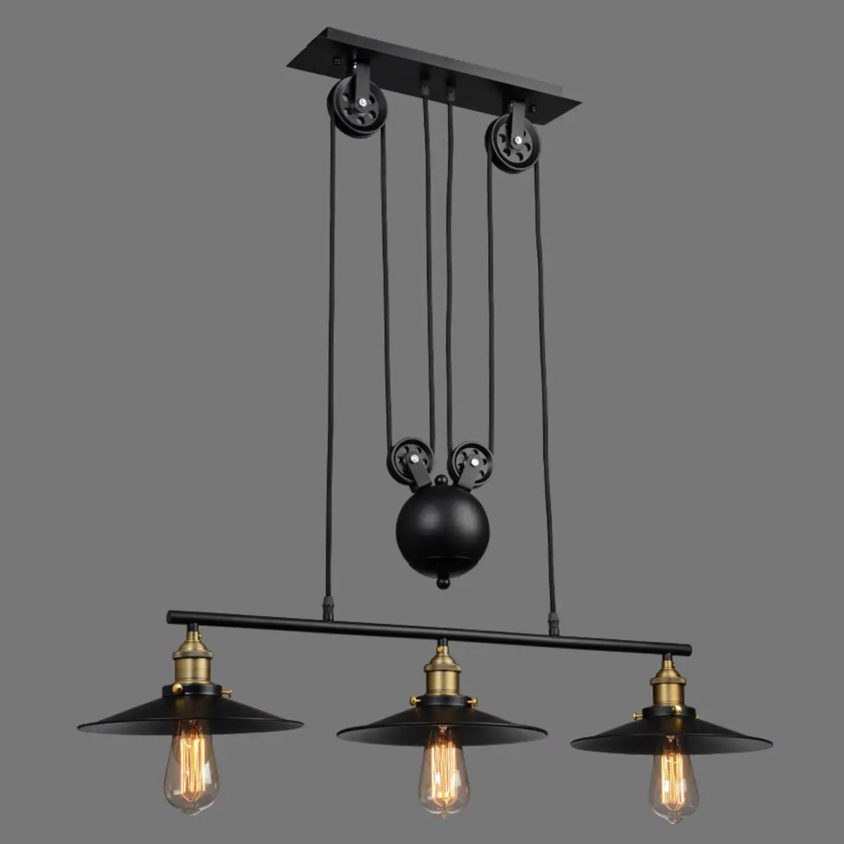 This chandelier combines industrial style with modern design, featuring a unique pulley structure and conical lampshade, presenting a perfect combination of modern and retro. The black iron lampshade with metal texture is not only durable and easy to clean, but also adds a chic decorative visual focus to the kitchen.