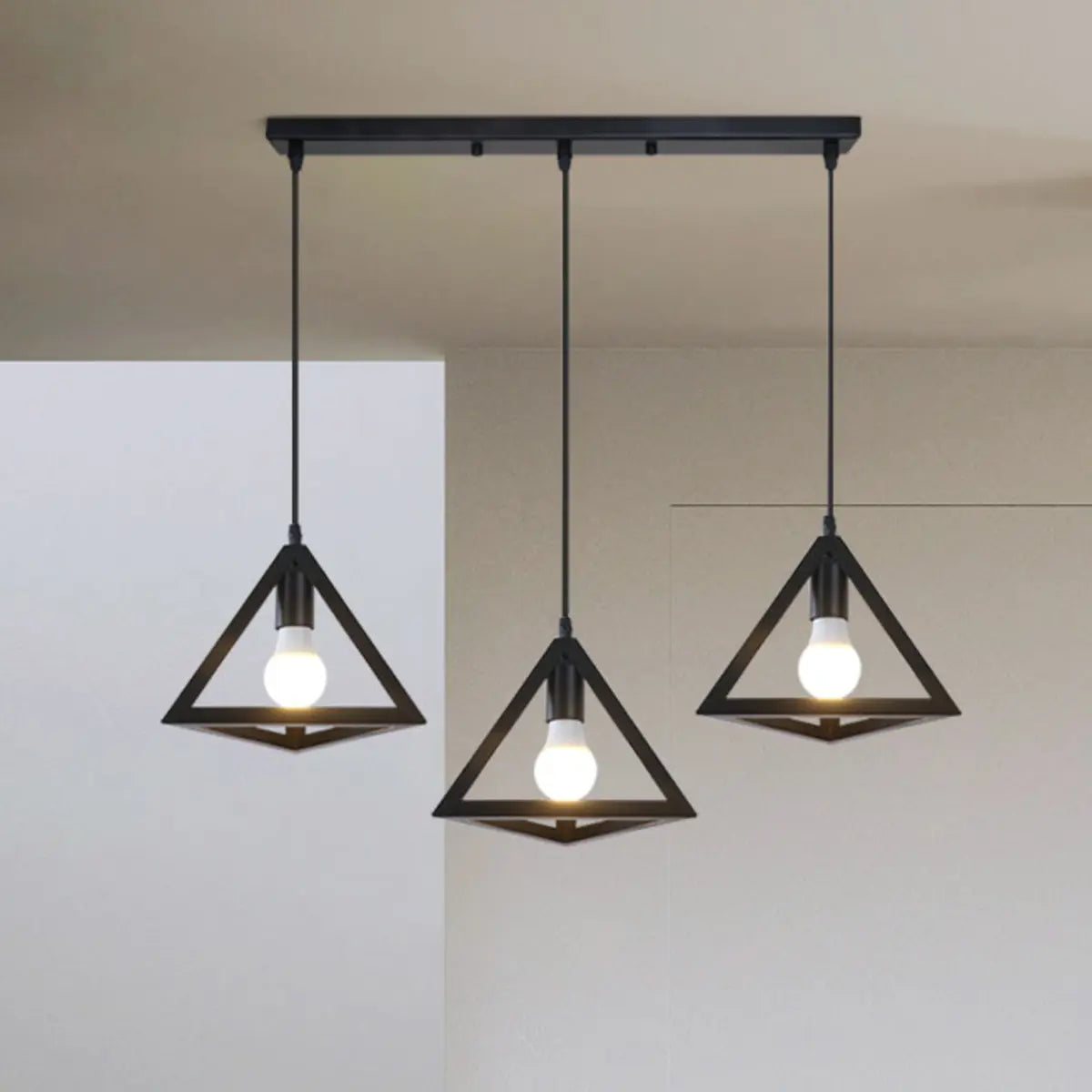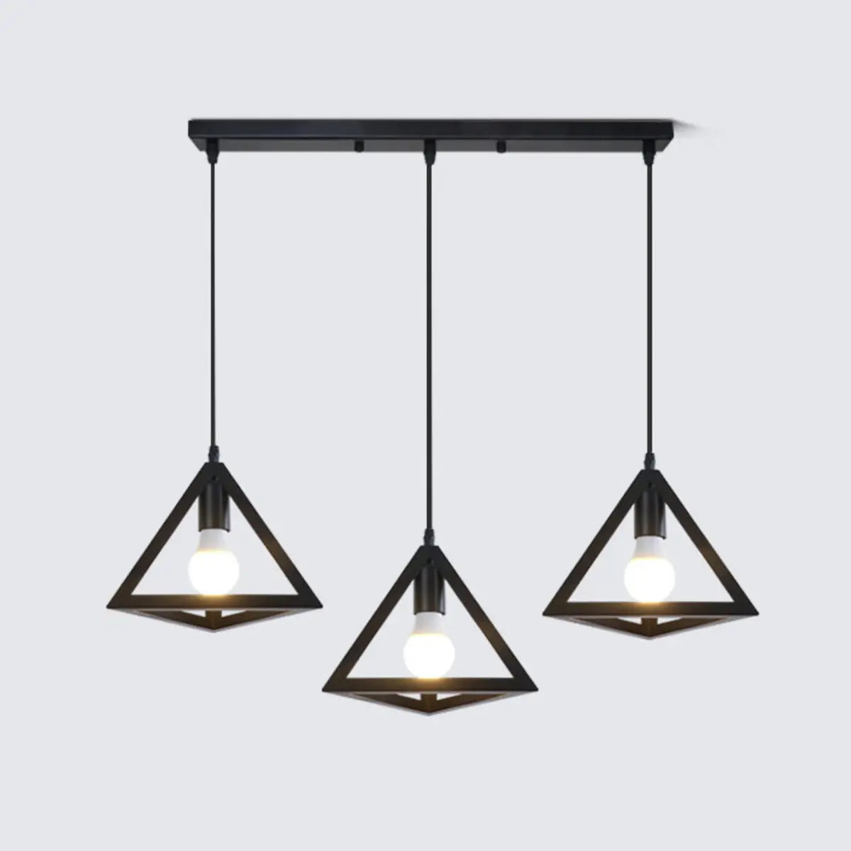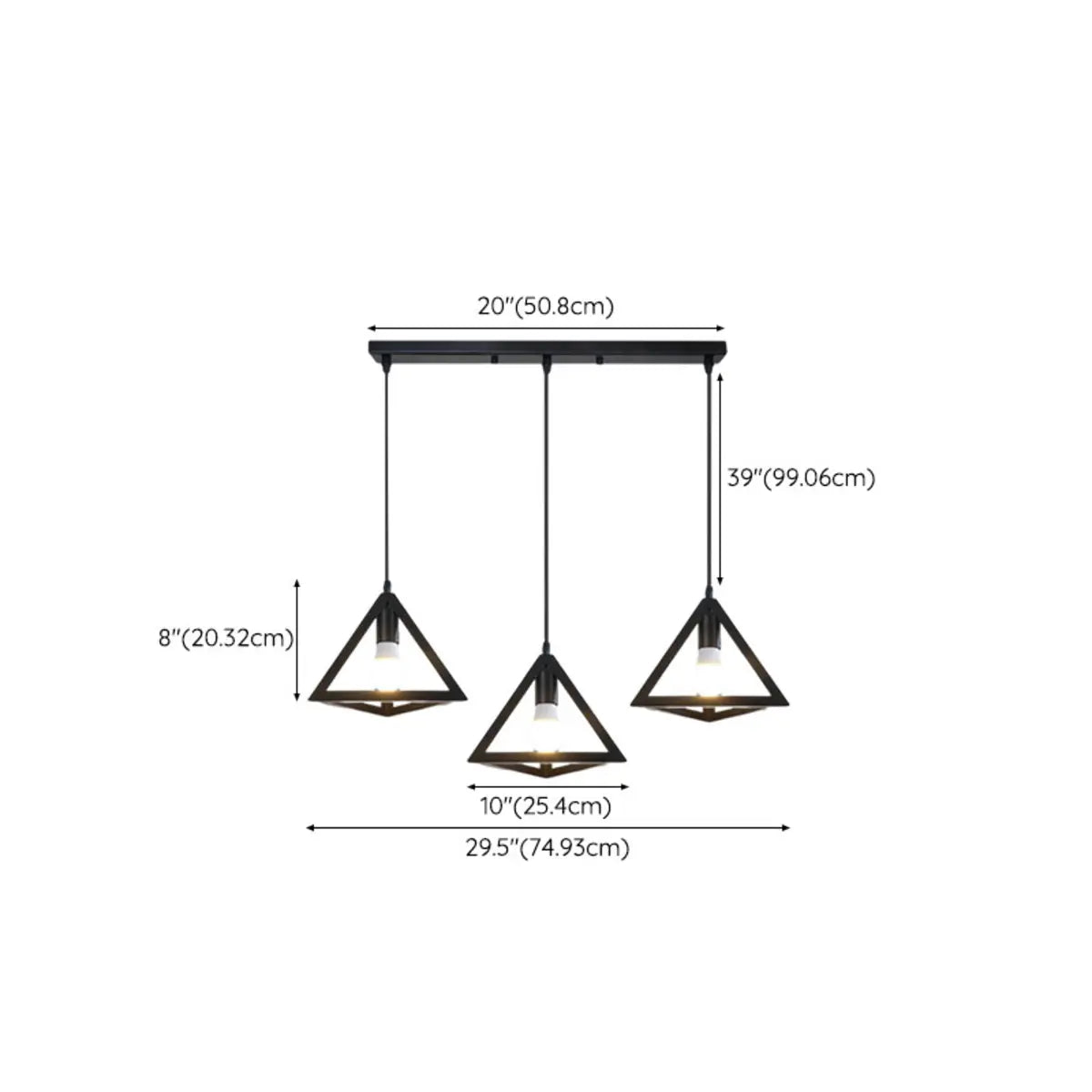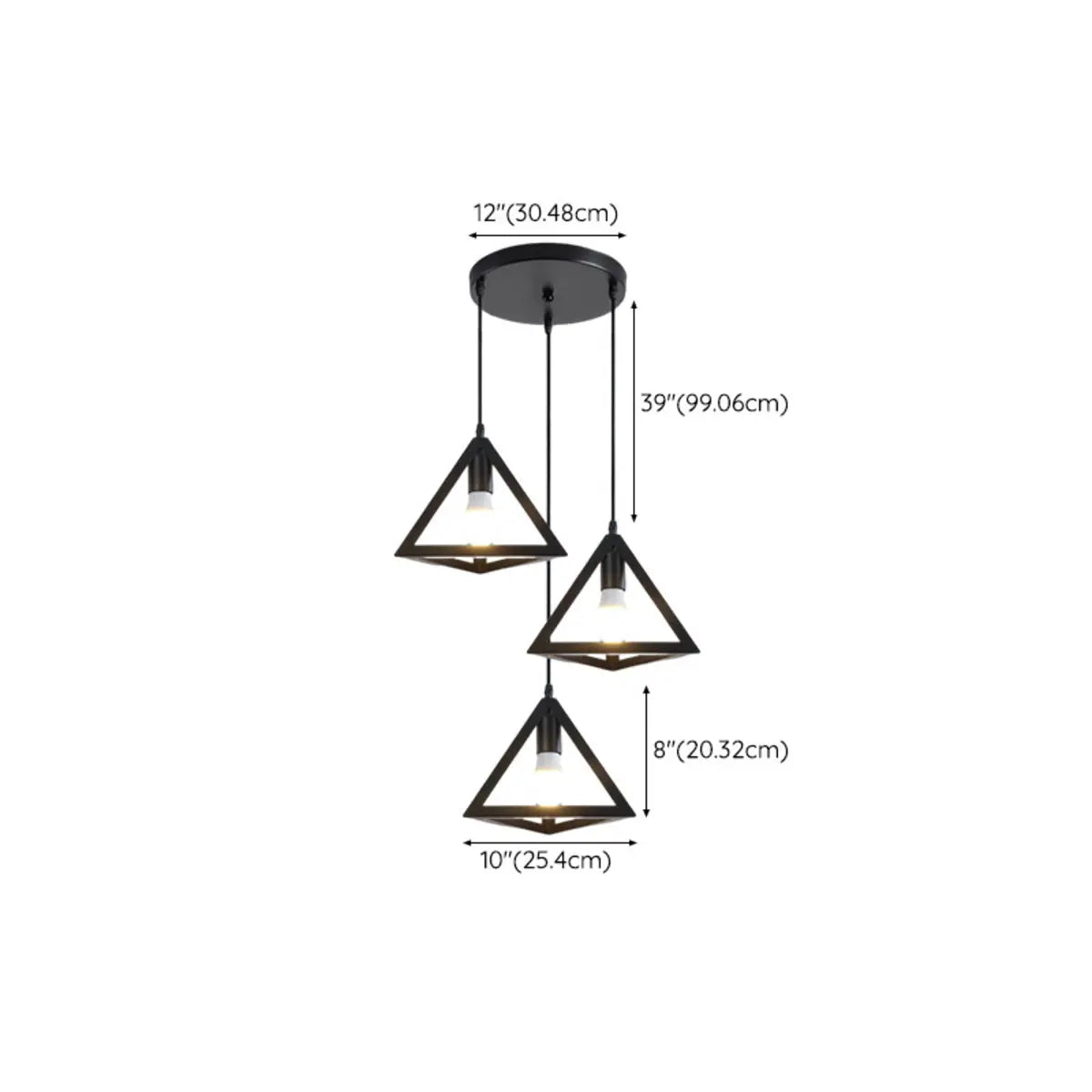 ZOWALA - Industrial 3-Light Triangle Black Metal Pendant Light