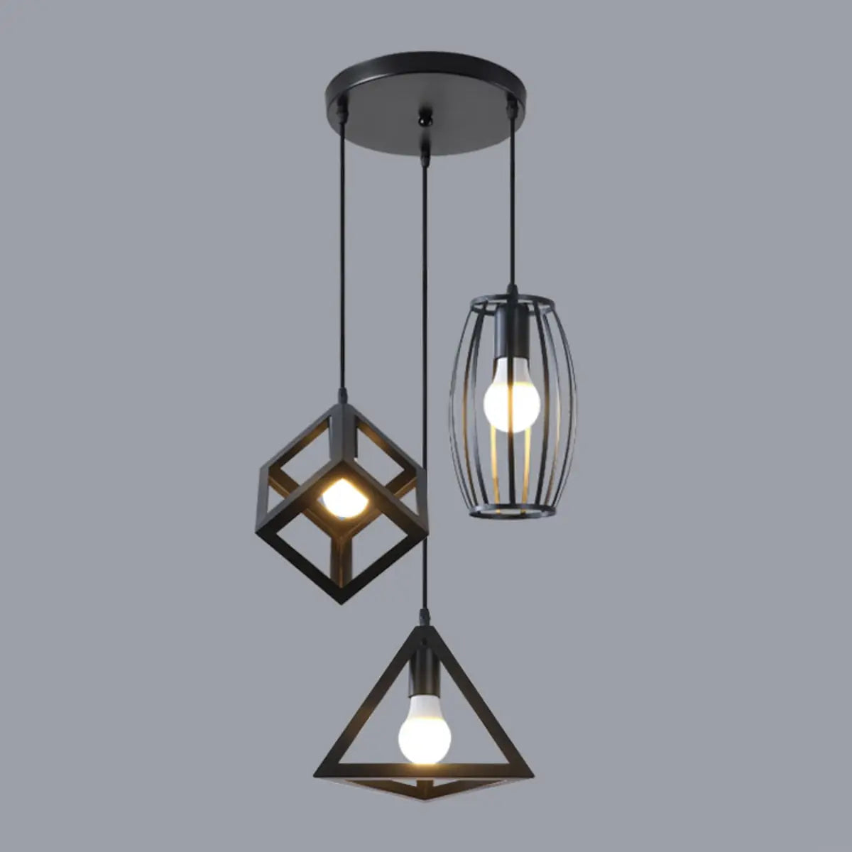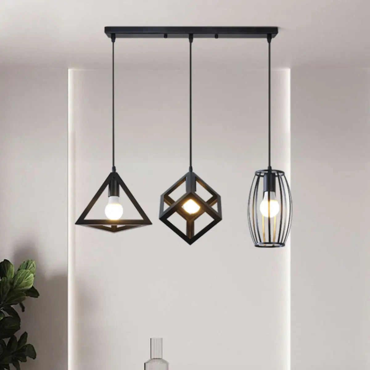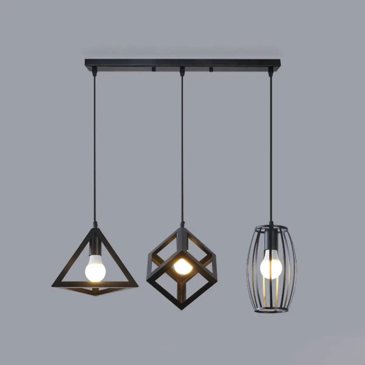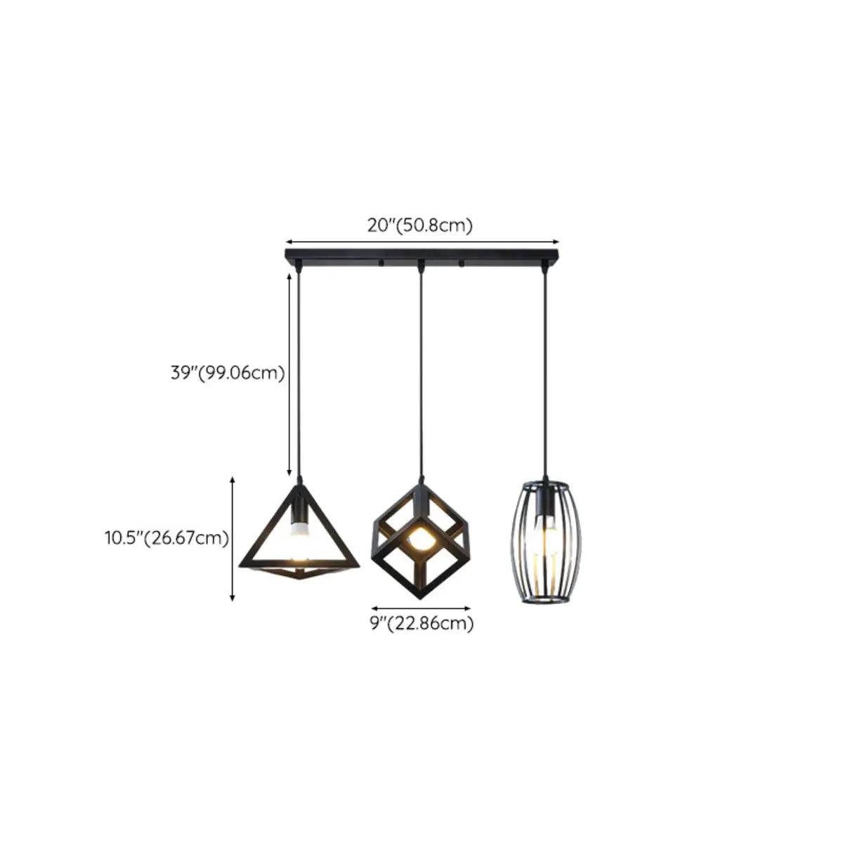 ZOWALA - Industrial 3-Light Triangle Black Metal Pendant Light