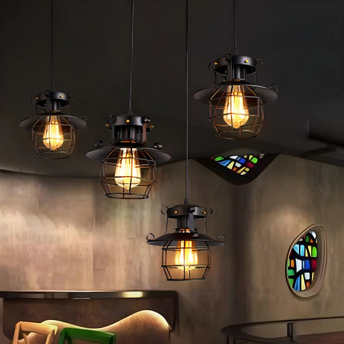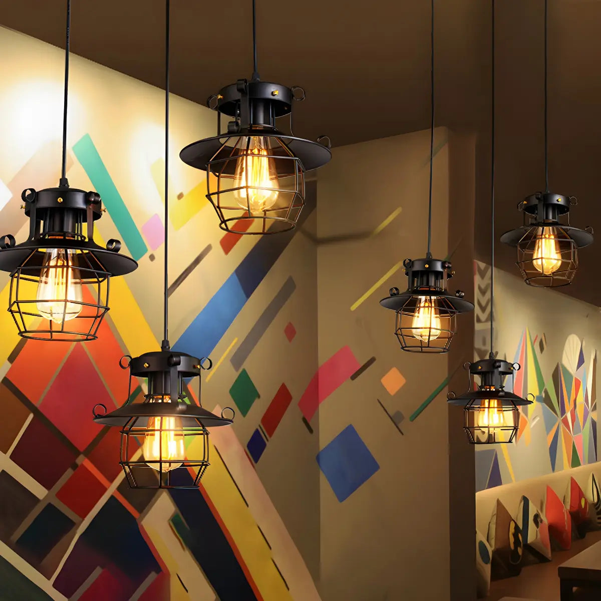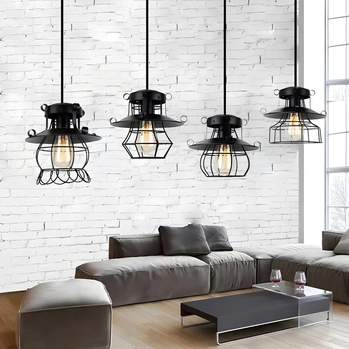 ZOWALA - Industrial Black Iron Caged Pendant Light