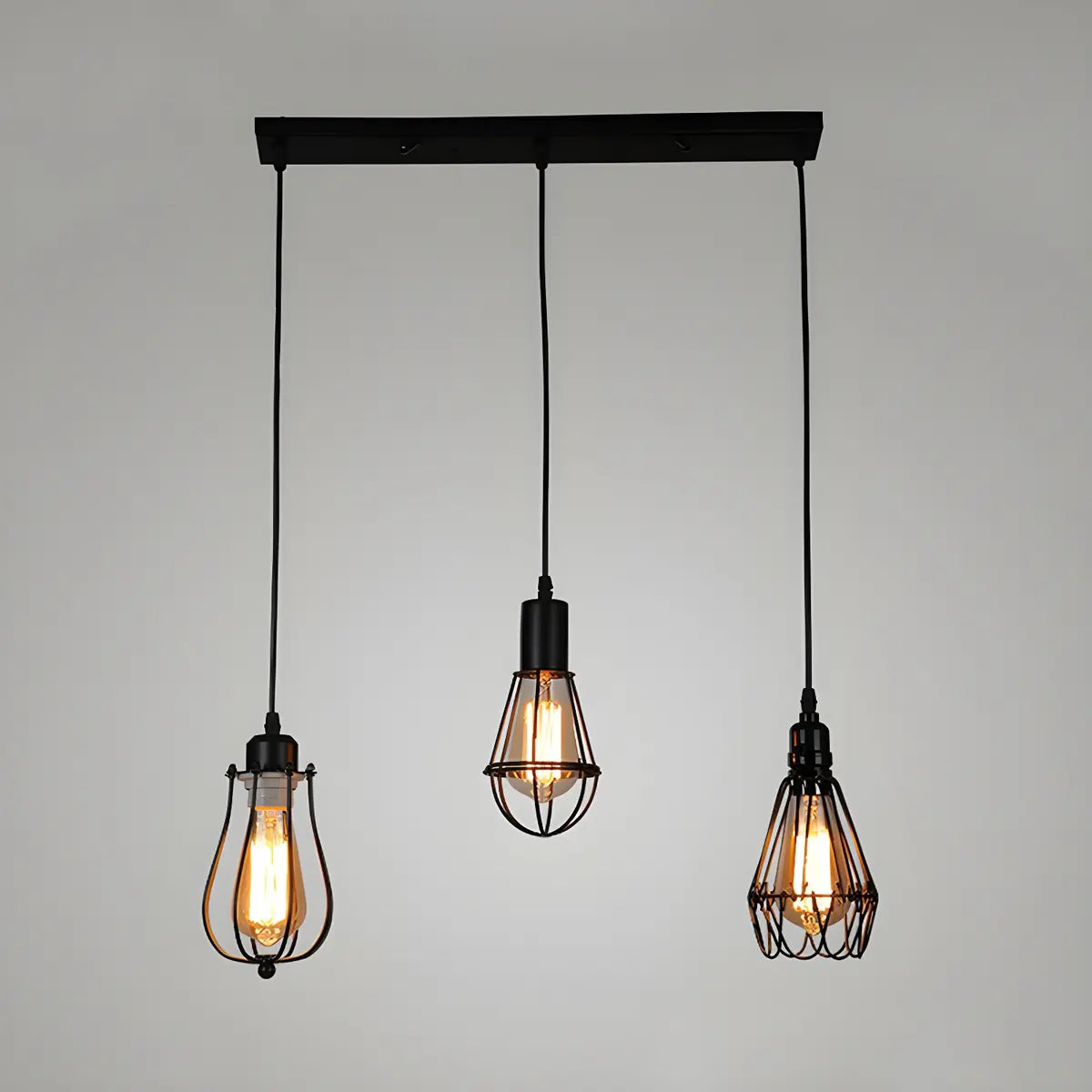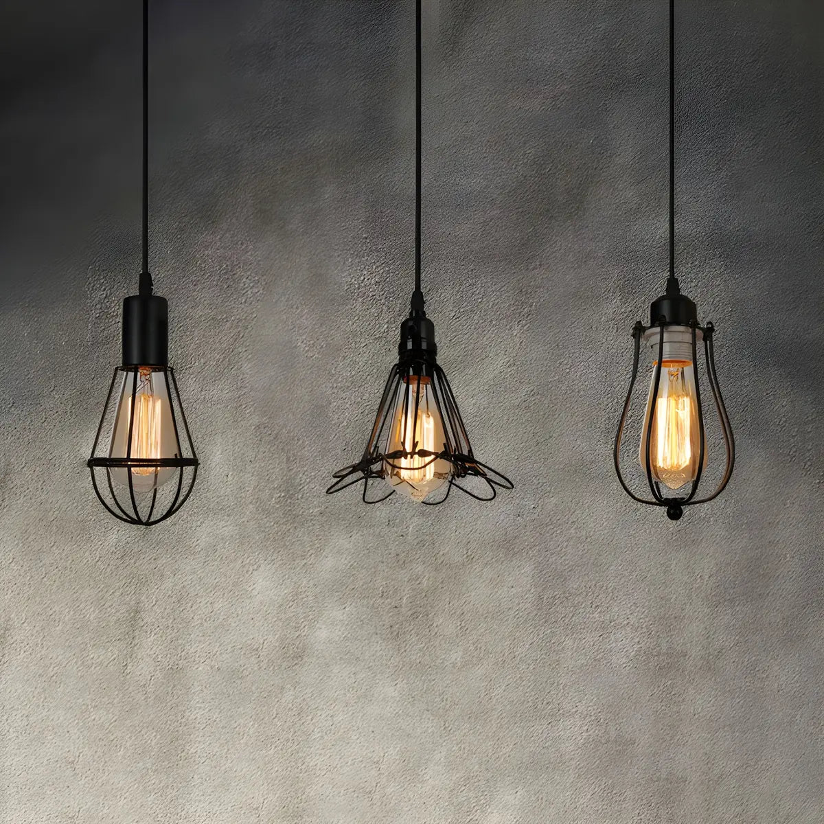 ZOWALA - Industrial Black Metal Cage Edison Bulbs Hanging Light
