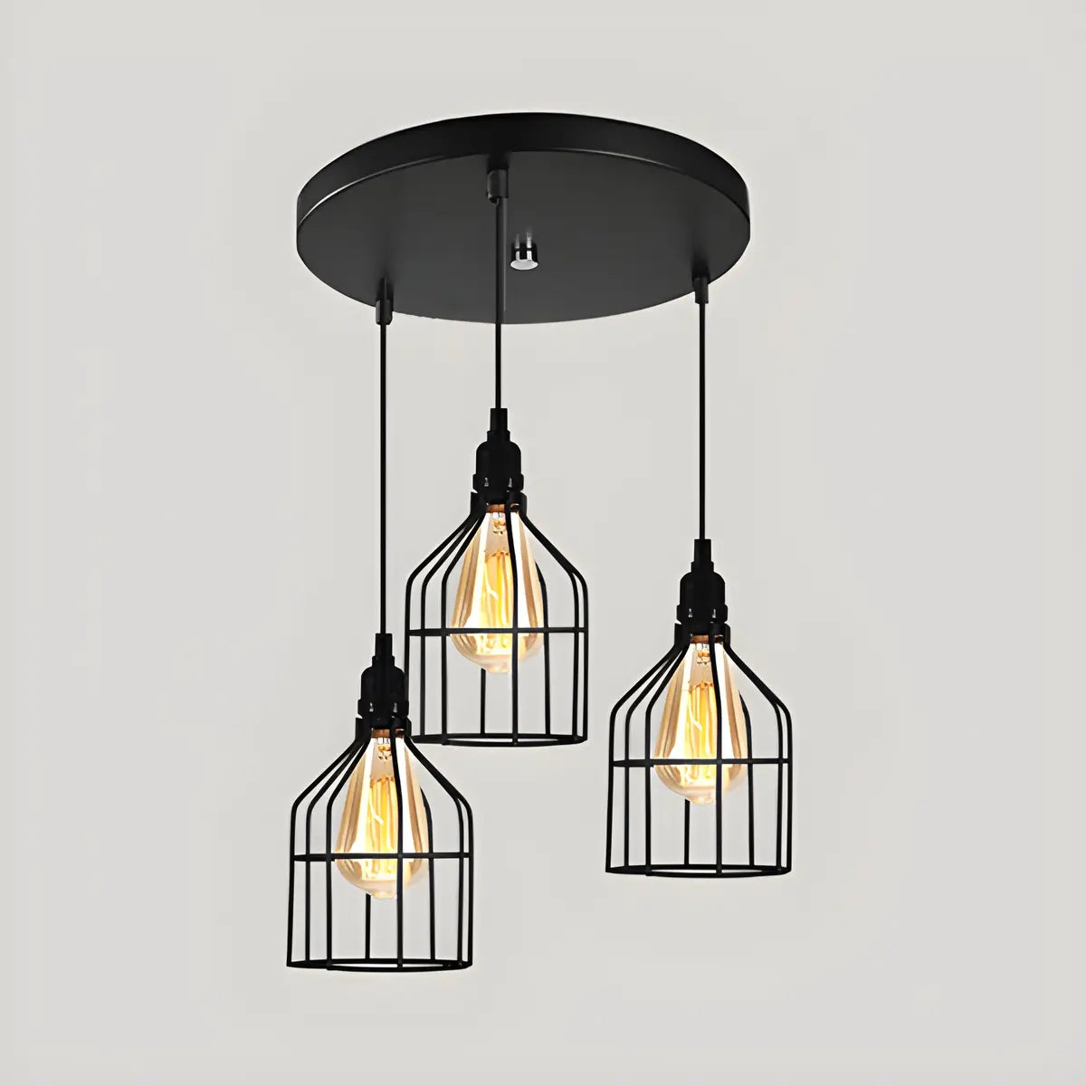 ZOWALA - Industrial Black Metal Geometric Caged Pendant Light