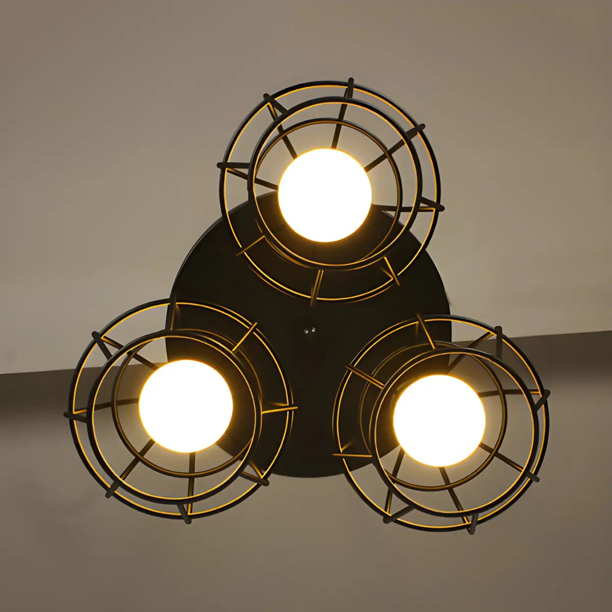 - The three-light combination and geometric metal frame add a modern touch to the space.