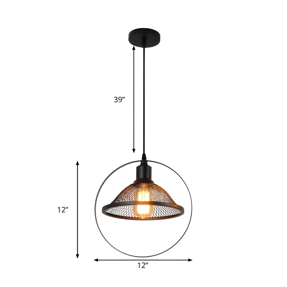 ZOWALA - Industrial Black Metal Mesh Ring Hanging Light