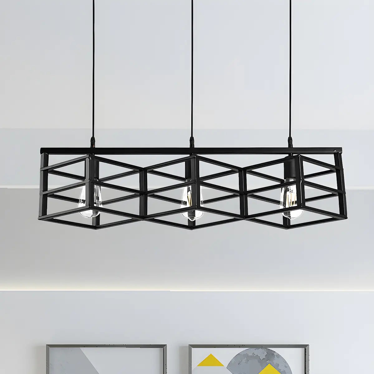 ZOWALA - Industrial Black Rectangular Cage Pendant Light