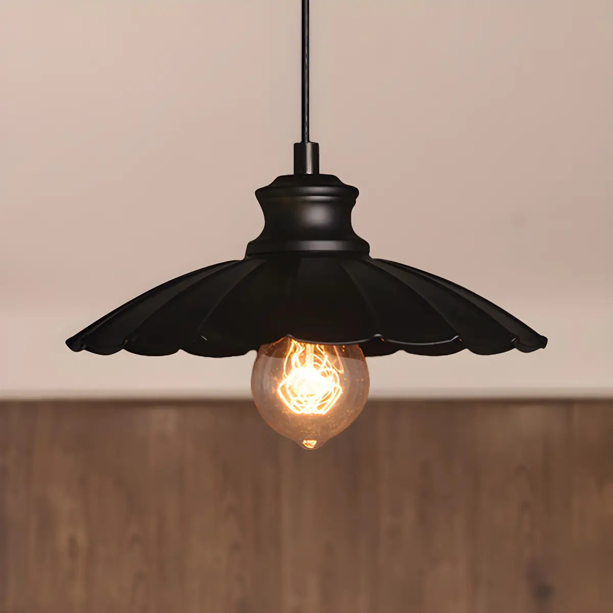 ZOWALA - Industrial Black Scalloped Flare Bulb Pendant Light